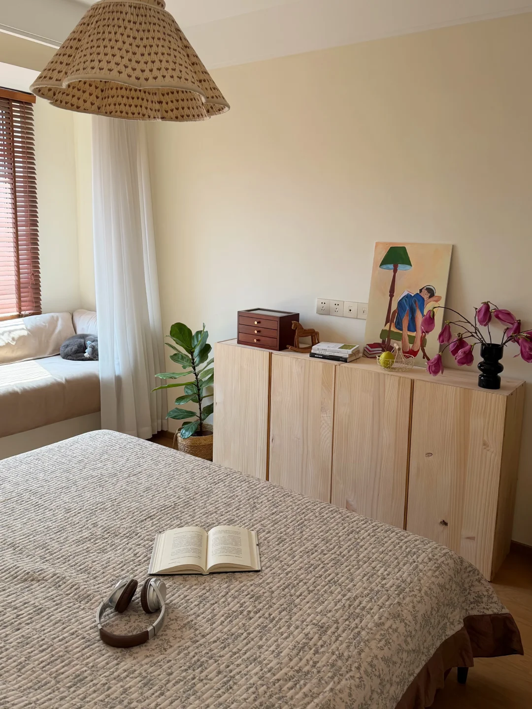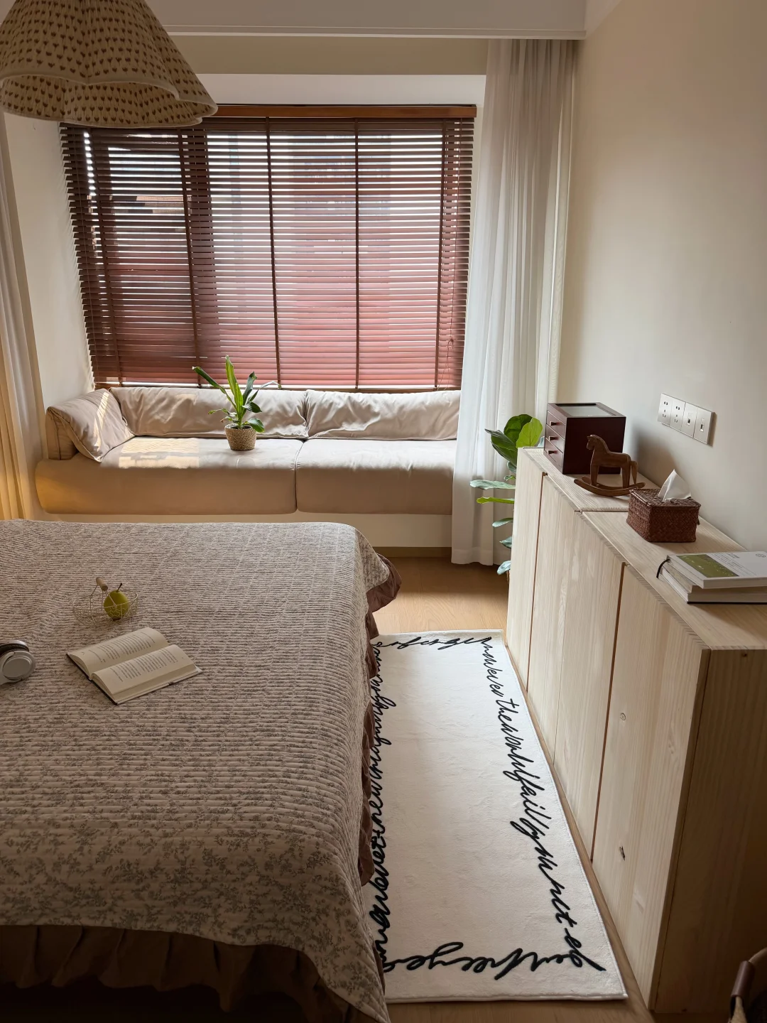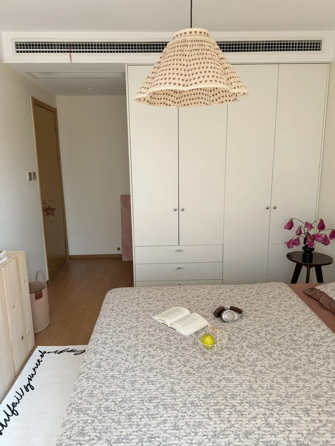 精装房交付的小家 卧室只有是平 做了L型衣柜后满足了日常的储物空间 家里的每一件东西都是自己精挑细选的 虽然不豪华 却也简单温馨 这样的小房间 真的越住越爱