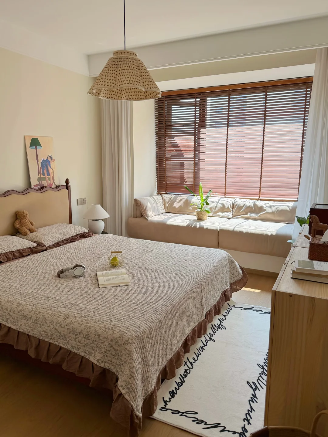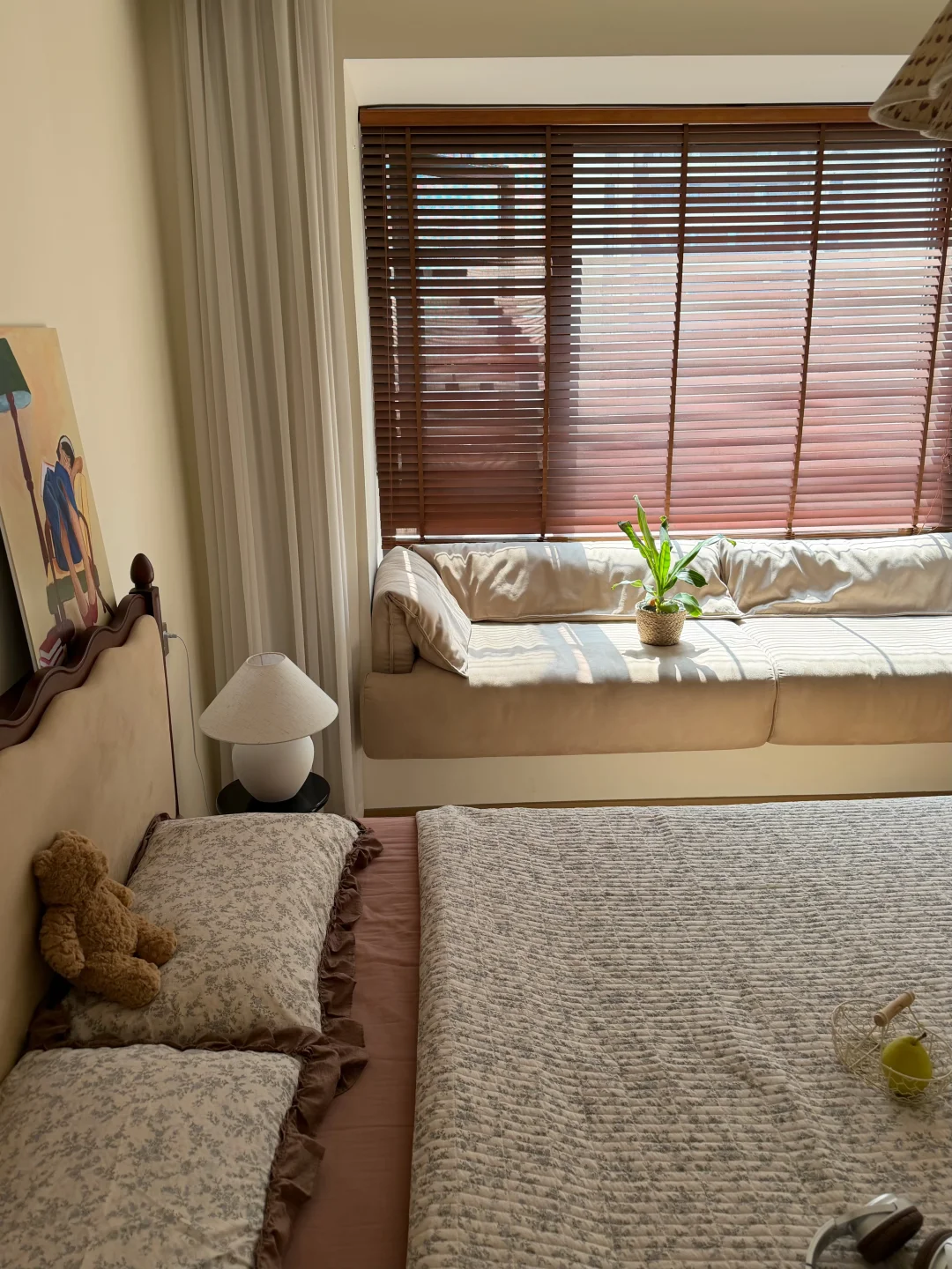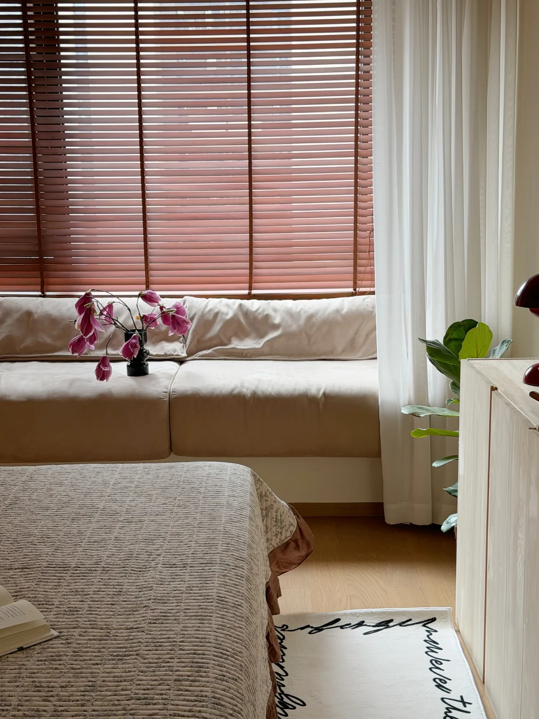 精装房交付的小家 卧室只有是平 做了L型衣柜后满足了日常的储物空间 家里的每一件东西都是自己精挑细选的 虽然不豪华 却也简单温馨 这样的小房间 真的越住越爱