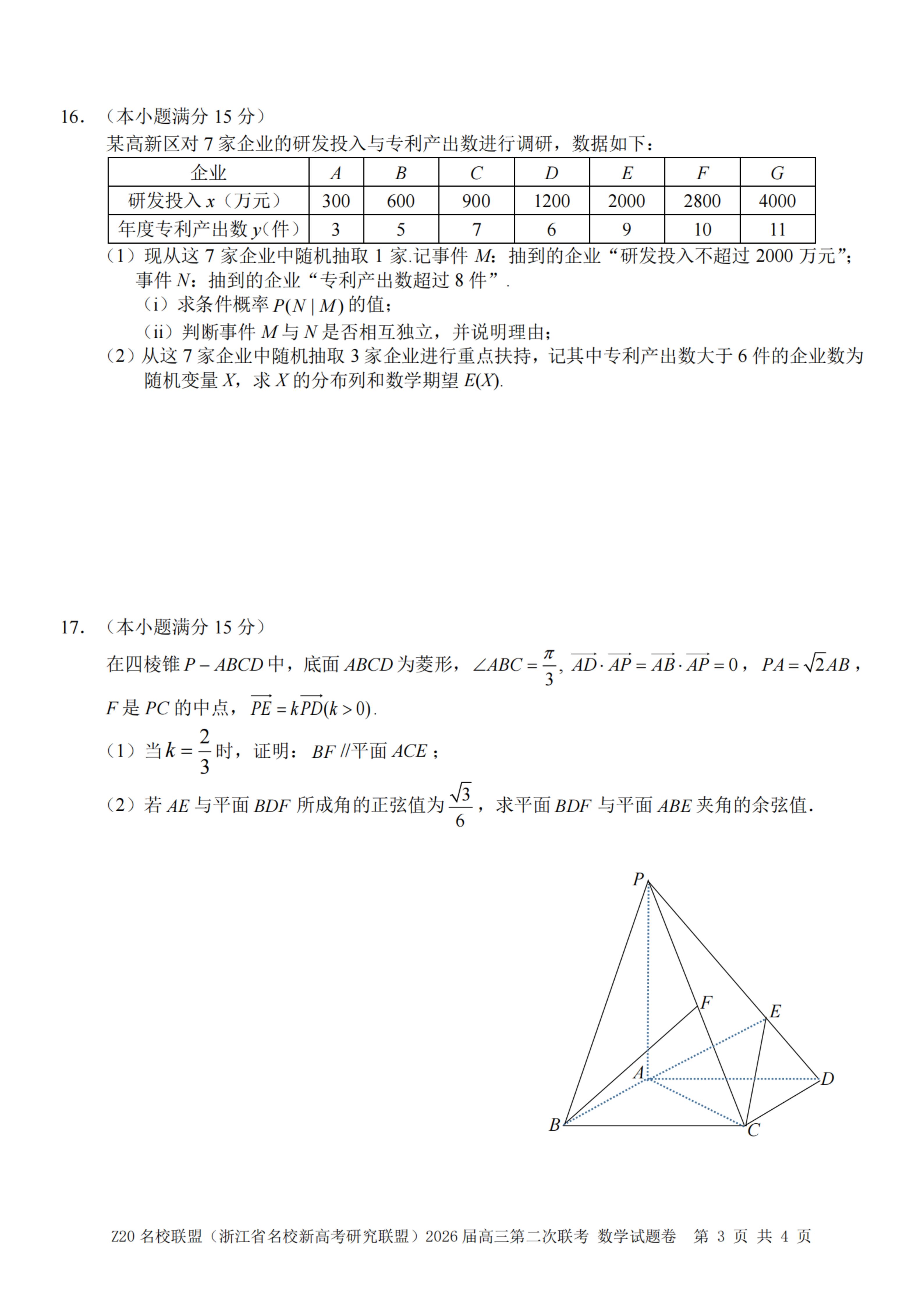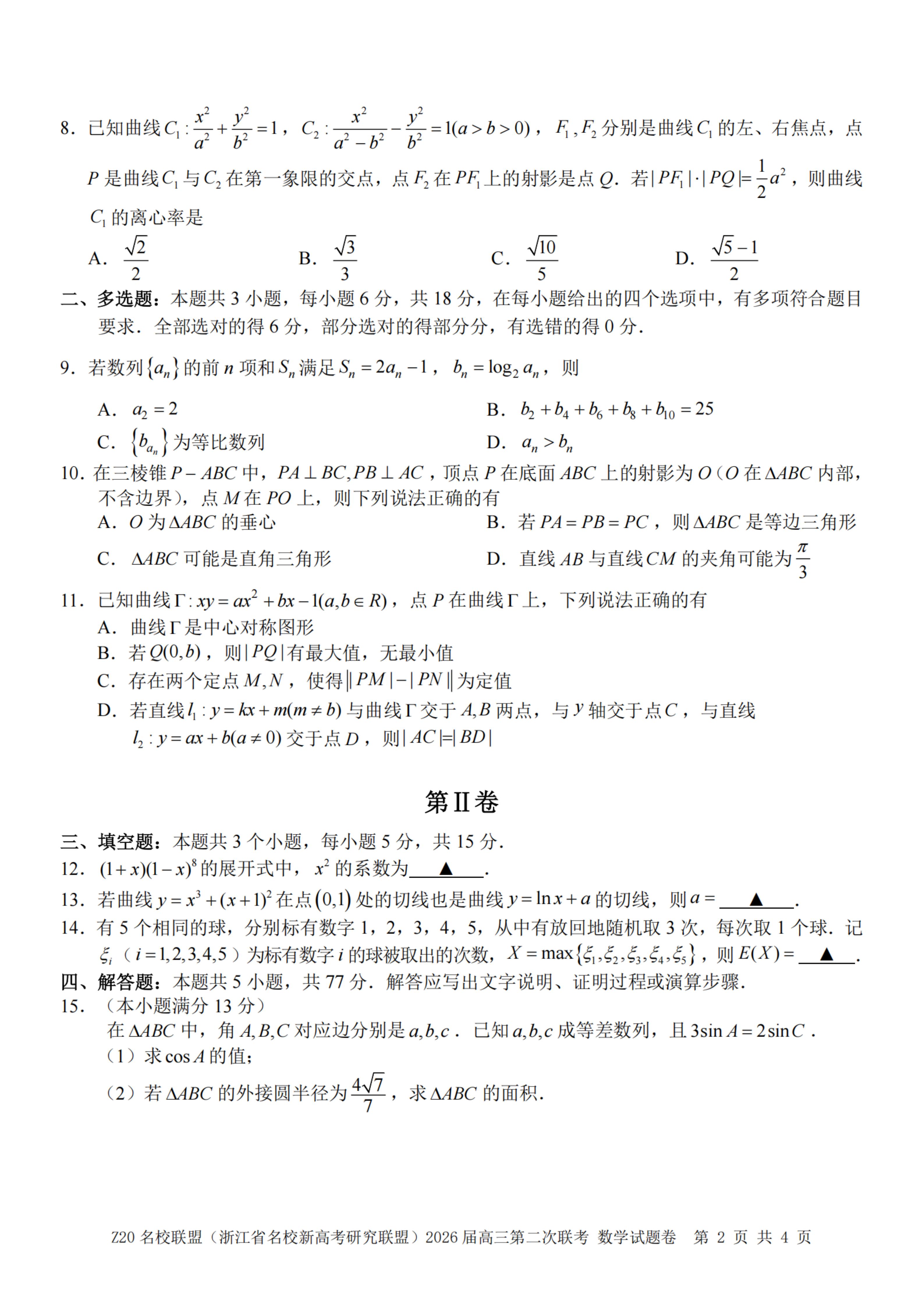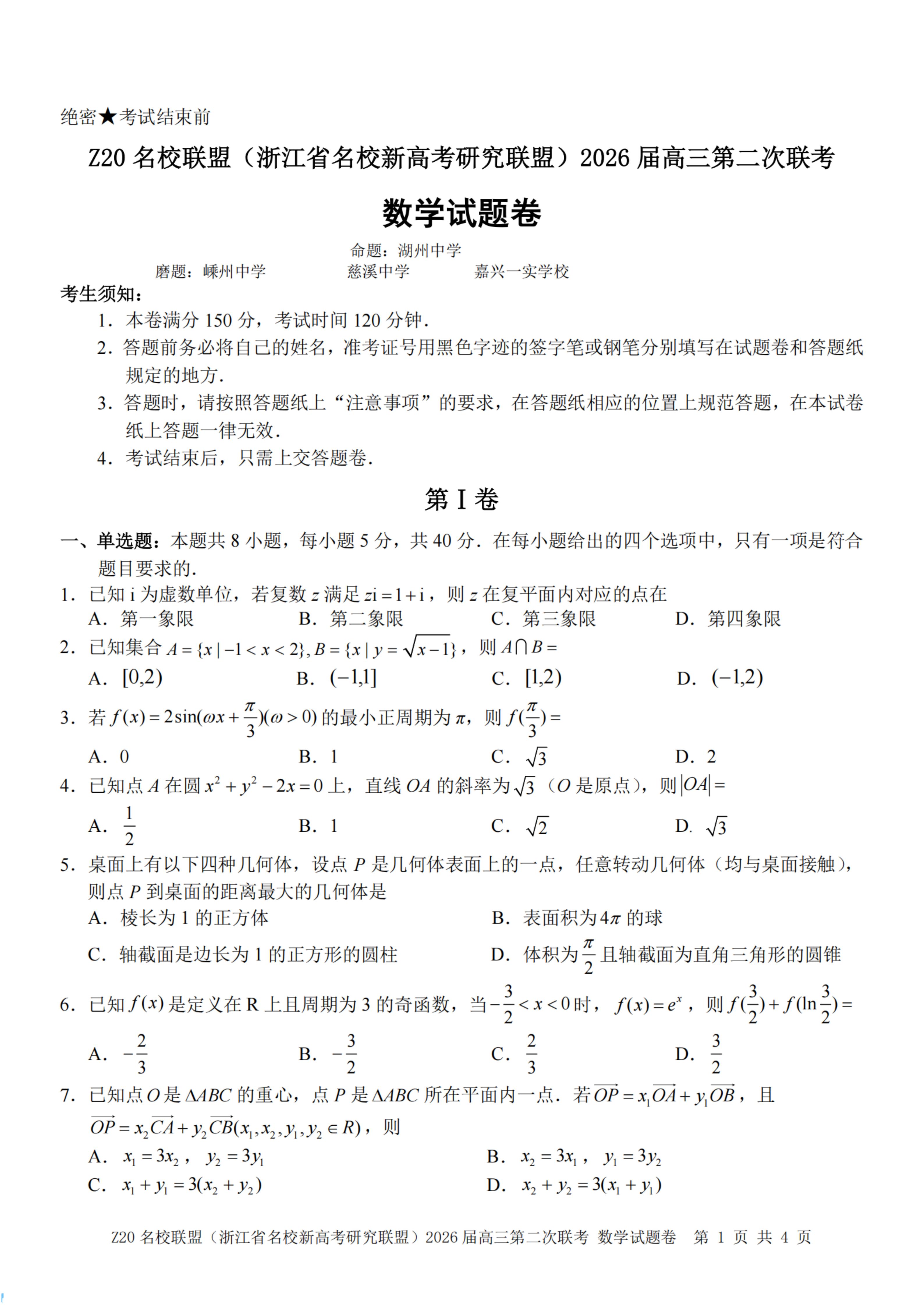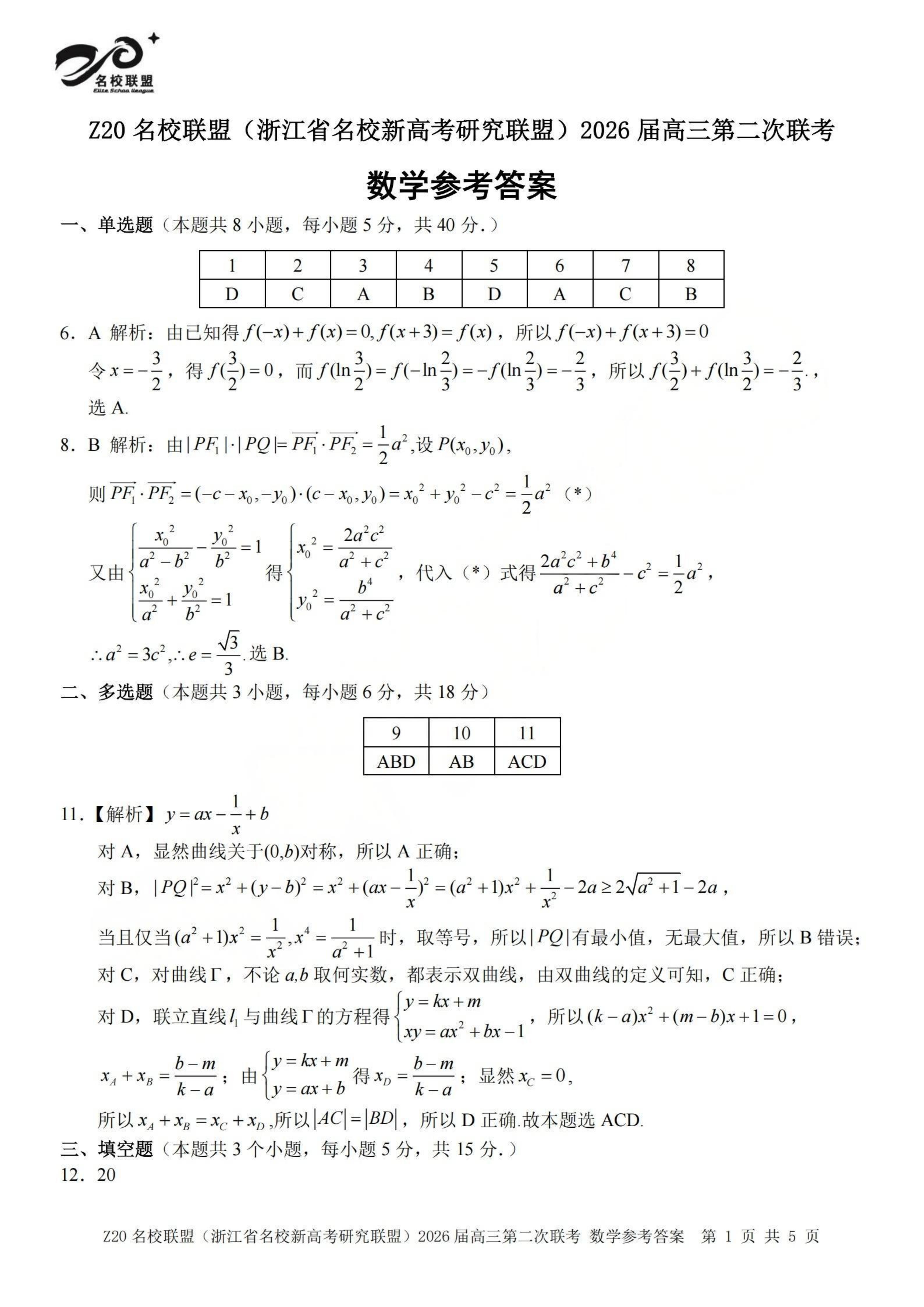 这套卷子,太值得所有高三生好好研究了!。【0073】Z20名校联盟2026届高三第二次联考 !有详细答案解析,可下载打印~