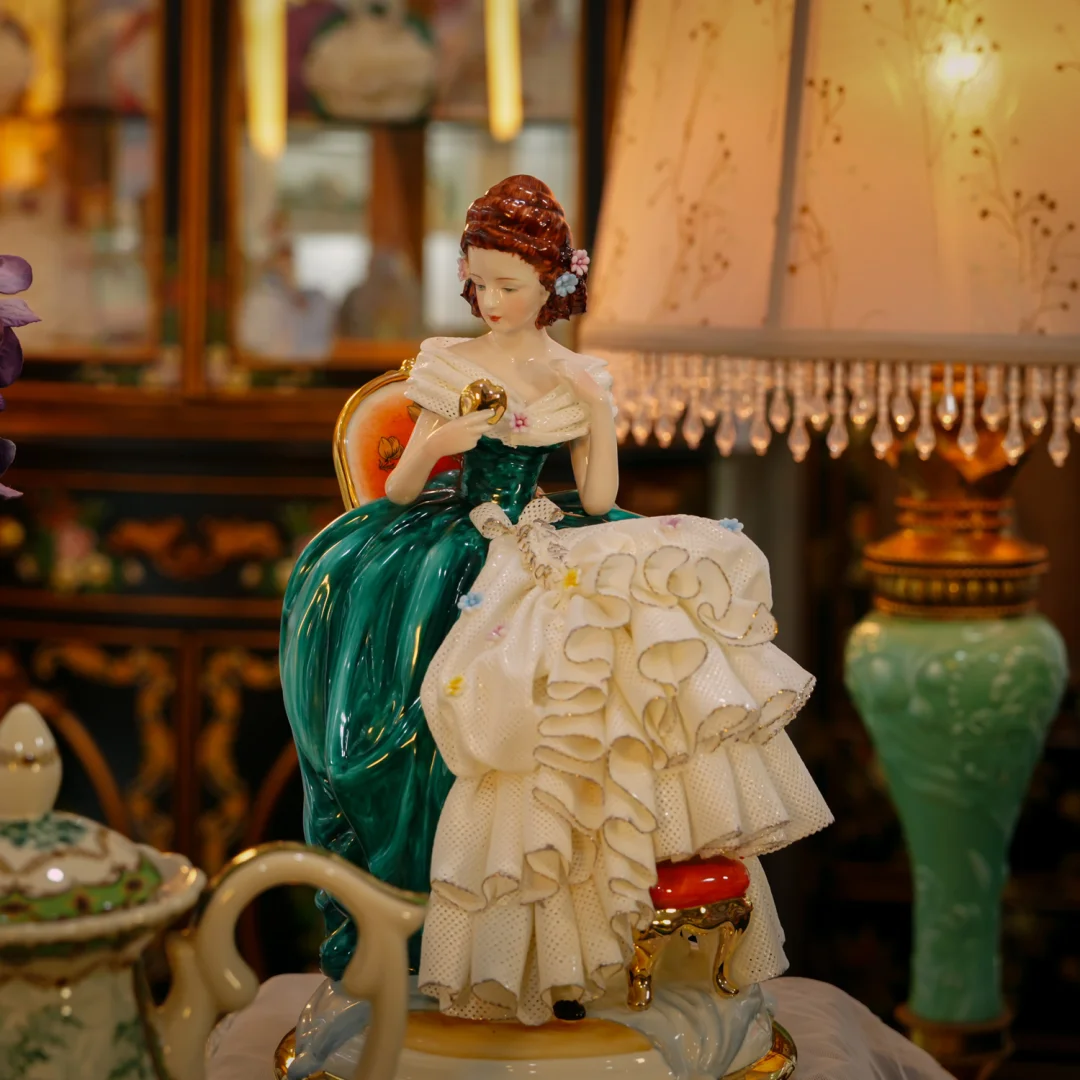 复古陶瓷少女摆件|蕾丝细节太戳我了💖