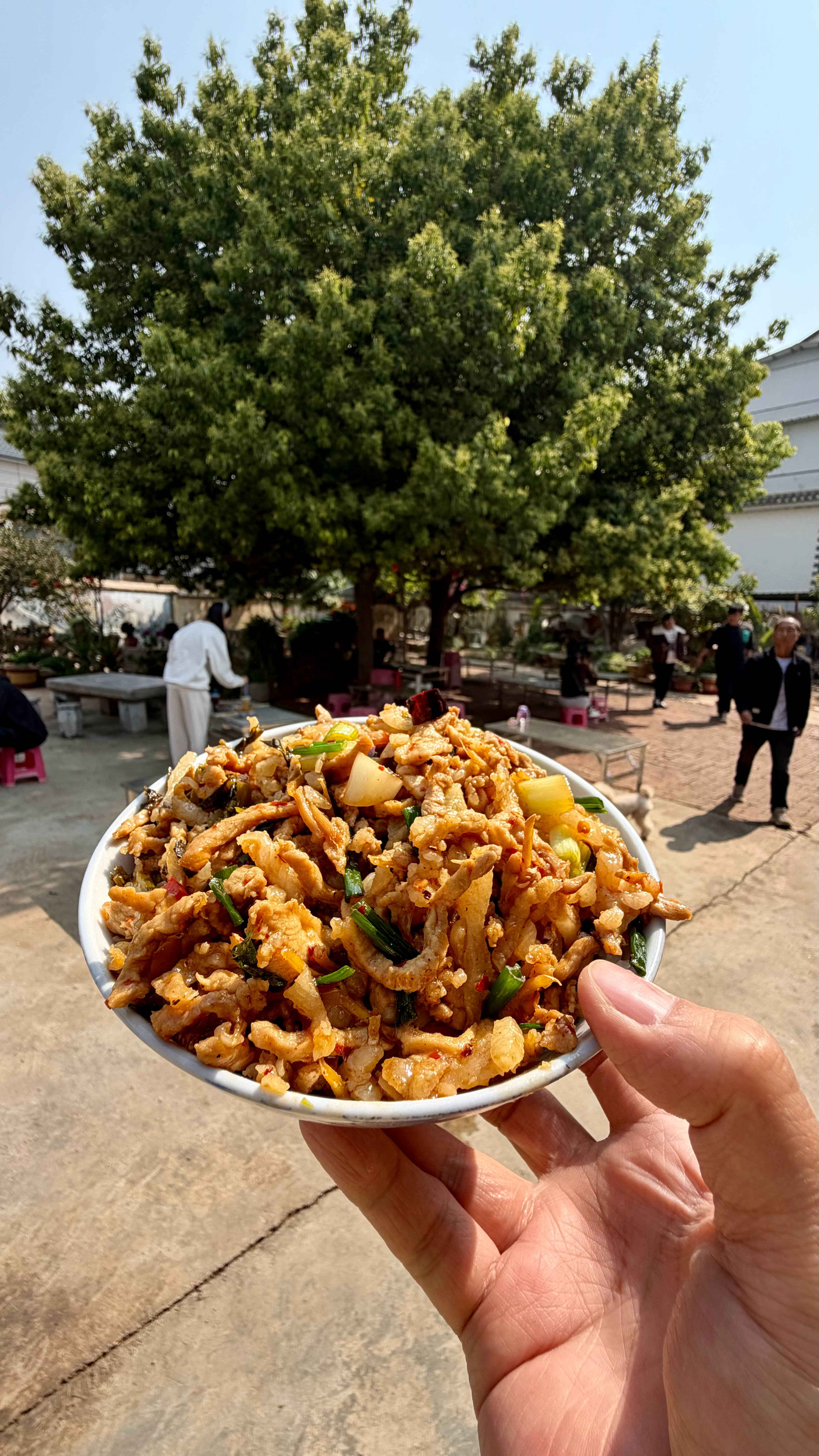 在丽江永胜的村子里,藏着一家开了20年的老四带帽饭。柴火现炒的浇头,搭配管够的素菜和榛子饭,14块一份就能吃到撑。还有免费的油茶和5块一杯的橄榄水,性价比绝了!✨带帽饭🍚这东西可是有600多年历史,从明朝洪武年间的老边屯传承至今,军屯时代的实在味道,一口下去全是乡愁。院子宽敞漂亮,停车也方便,来丽江可别错过这朴实的人间滋味😋我是丽江豆花名宿客栈掌柜,到处吃喝到处逛,只把自己认为值得的分享给你们~豆花名宿吃货团丽江旅行丽江美食 丽江·老四带帽饭