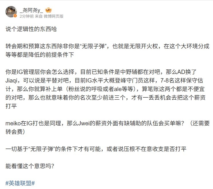 meiko在IG打也是同理,那么Jwei的薪资外面有缺辅助的队伍会买单嘛?(还需要转会费)