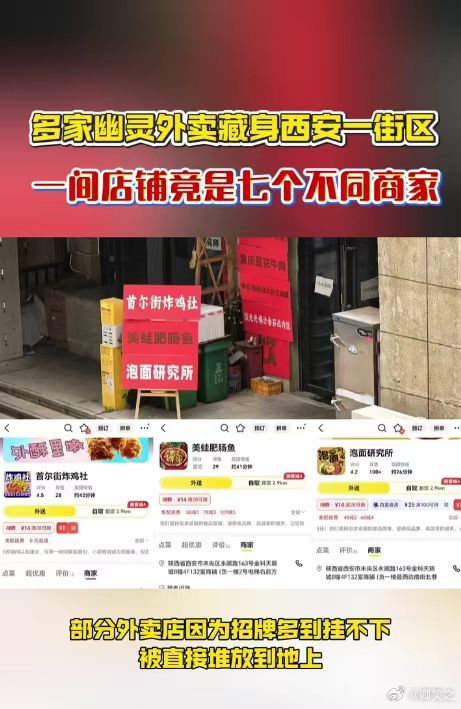 多家幽灵外卖藏身西安一街区西安街头惊现“幽灵外卖”聚集区。一家小店悬挂七个外卖招
