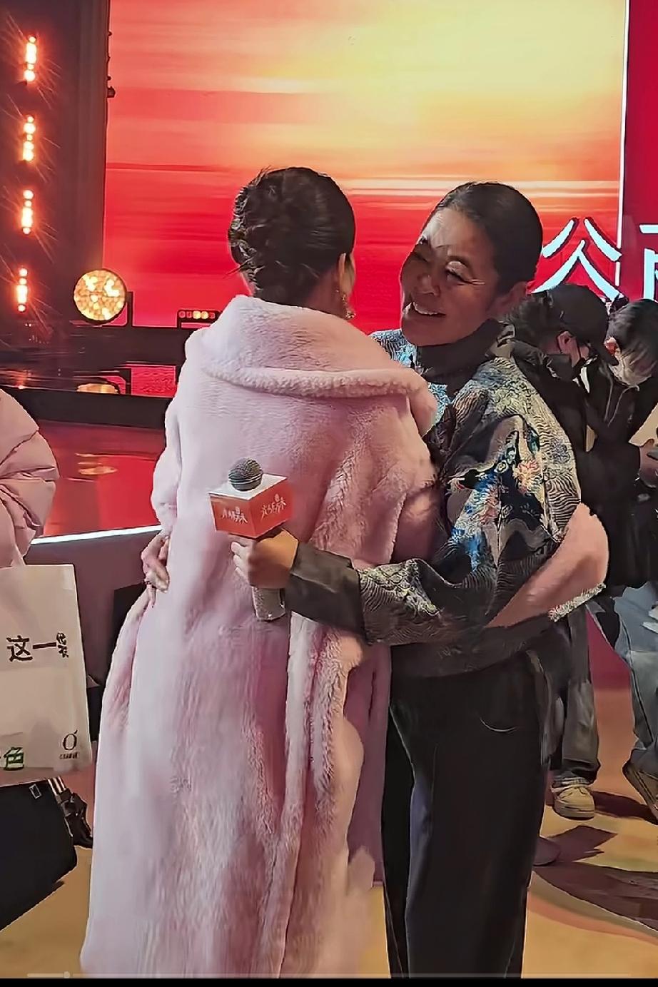 赵雅芝和倪萍一见面就亲热的拥抱,赵雅芝的衣品太好了,这套粉色的大衣搭配毛茸茸的白色裤子,看起来仙气飘飘的,给人一种少妇的既视感。而倪萍穿的跟个中年老大妈似的,其实赵雅芝比倪萍还大6岁呢,身高也和倪萍差的多,也许是拍摄角度问题,看着比倪萍还要高。倪萍年轻时也是大美女一个,老了以后穿衣主打一个舒服随意为主。