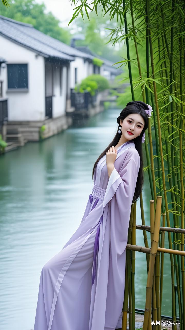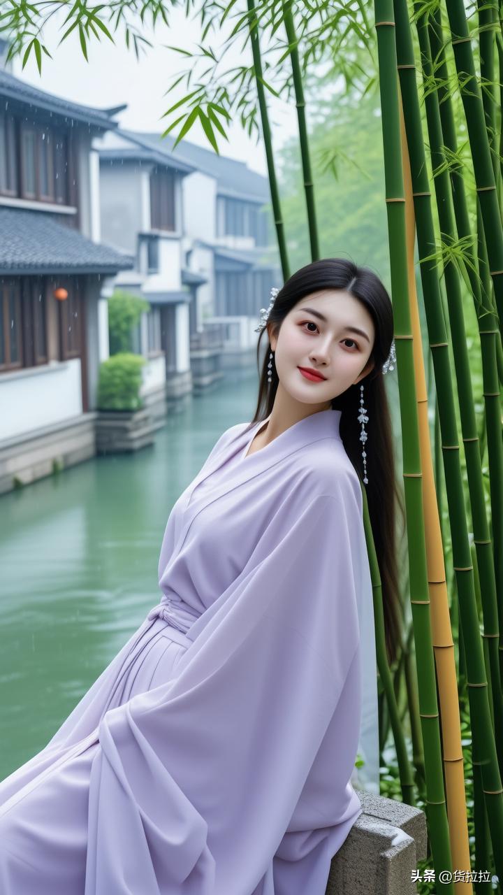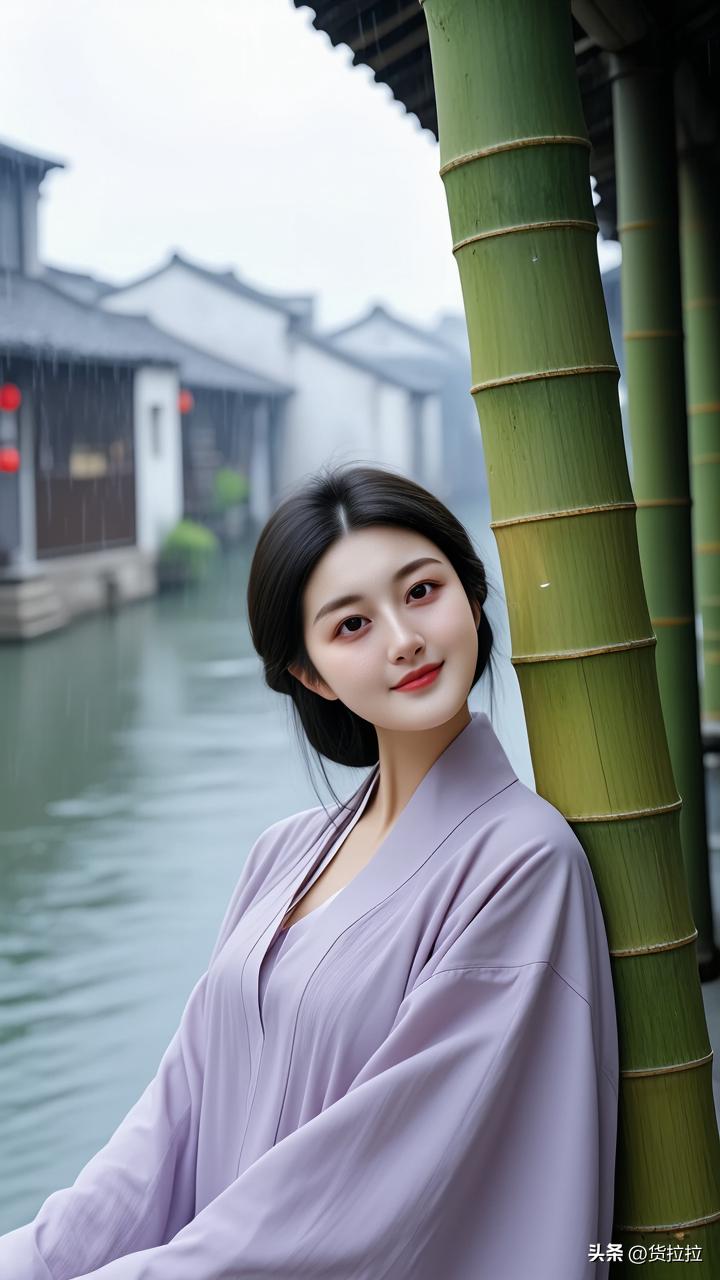 雨中少女倚竹立,古韵悠然入画来,江南美女!