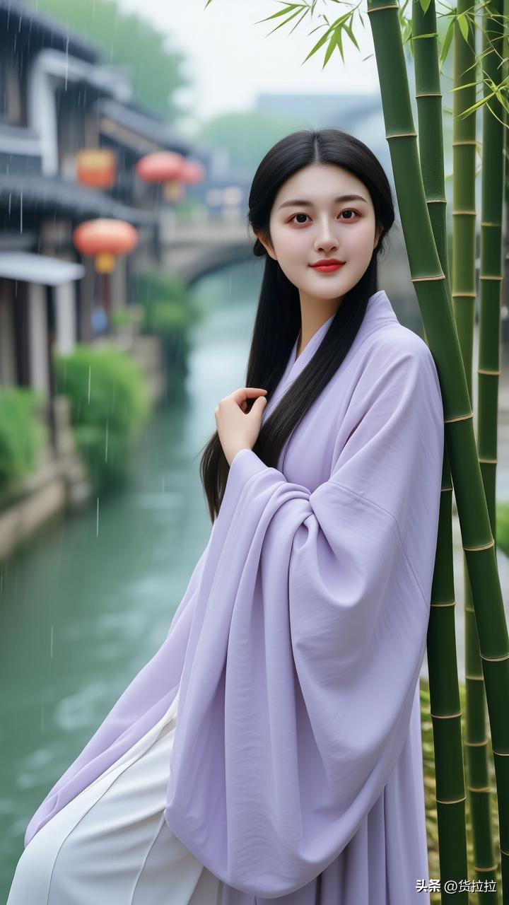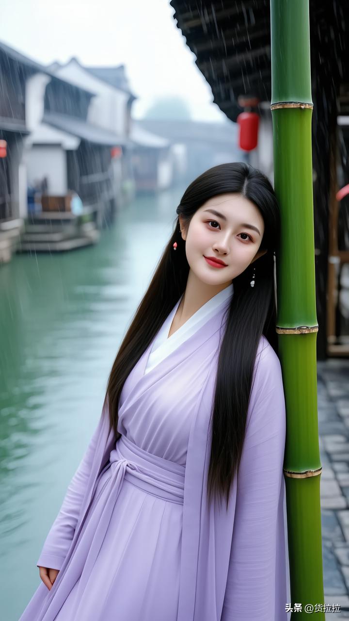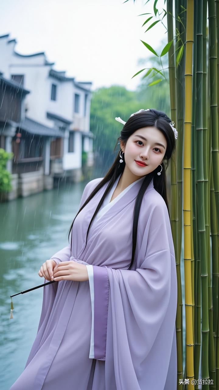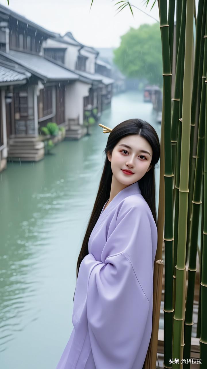 雨中少女倚竹立,古韵悠然入画来,江南美女!