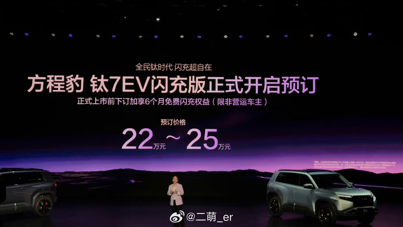 方程豹钛3闪充版上市啦!后驱15.38万 全轮驱动16.98万今儿一起来的钛7EV闪充版也可以开始预定了!22-25万,预计四月份正式上市今儿试了下闪充桩,也太轻了吧… 左右滑轨也好方便,重点是快啊 车桩匹配1000V 未来已来方程豹钛3上市