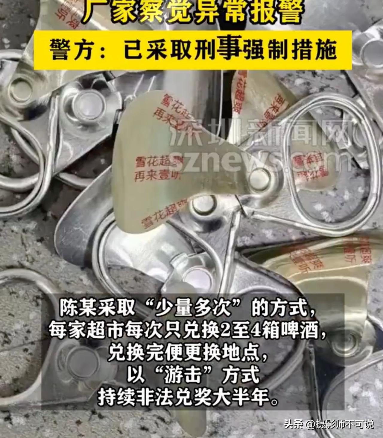 有这精湛的手艺干点儿啥不能赚钱,非要干违法乱纪的事情?50多岁的男子陈某通通过网购买入37000个空白啤酒瓶盖儿,然后在盖子上伪造“再来一瓶”大奖。大半年时间每天兑换10箱啤酒,这家伙反侦察能力还很强,居然采取去不同地方少量多次领奖的方式,居然一直平安无事儿。要不是厂家发现最近兑奖异常,估计这家伙还要一直逍遥法外下去。你说,每天10箱啤酒才几块钱?还那么辛辛苦苦提心吊胆的!有这么牛的手上功夫,去老老实实的干点儿啥都比这赚钱!