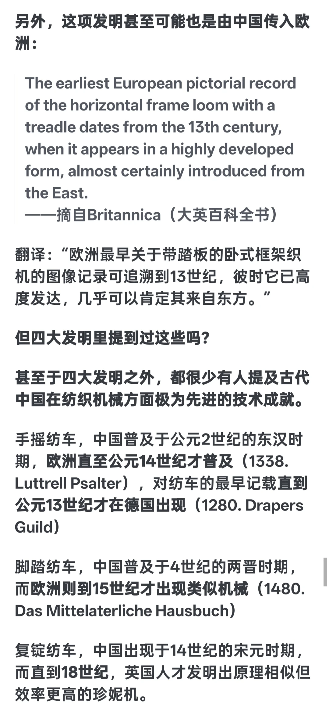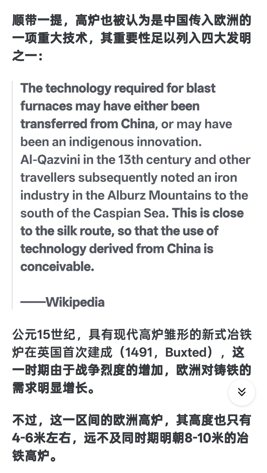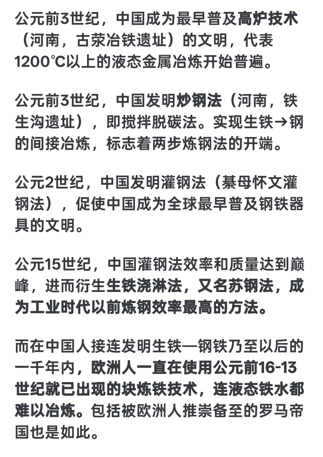 我是小乌鸦 1 2026-03-14 08:41 因为是故意的啊,把你的科学技术只限制在四大发明以内。让你在舆论场上落入没有中国古代没有体系科技的舆论陷进。学天文必定诞生数学,所以周朝开始古代就有系统的数学著作了(周髀算经),炼铁必定带来采矿,冶炼等一系列的技术总结与进步。发达的铸造一定带来精细化标准化的金属器具(秦朝就有手钳了,活页了),医疗,地理,物理现象等。不过清朝一把过烧完了,而且因为清朝因为没有清算,你的所有想复兴或者称赞中华文明强大的言论,都是对清朝的鞭打贬低(因为它是毁灭者),所以你越想文化复兴越想说明古代文明,洗清朝的言论就越多。
