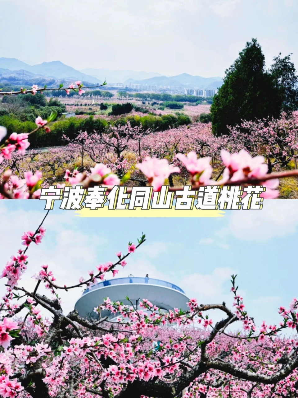 🎉看点:桃花坡(粉浪翻涌)、古道石阶(徒步赏花)、同山亭(远眺花海)