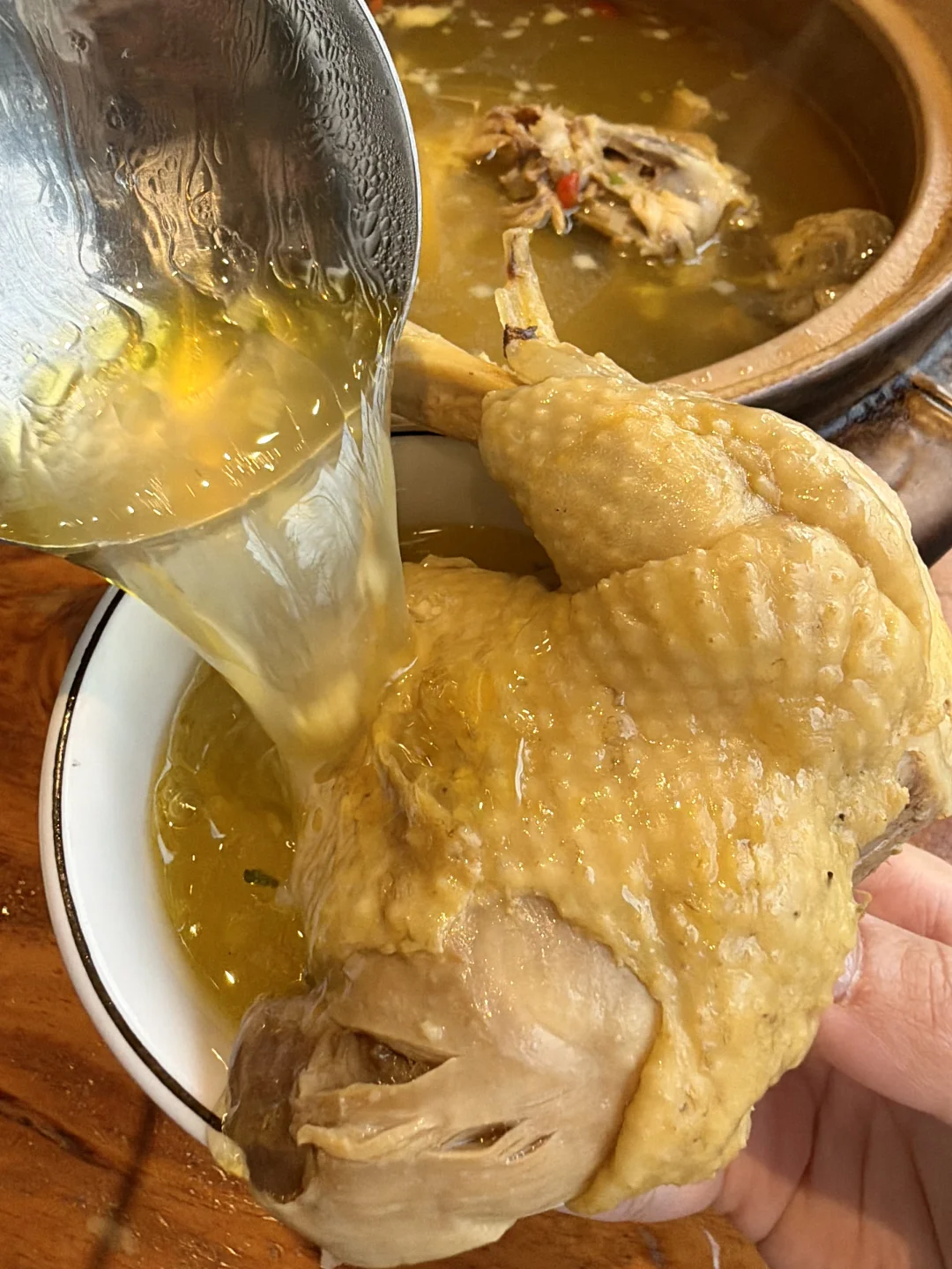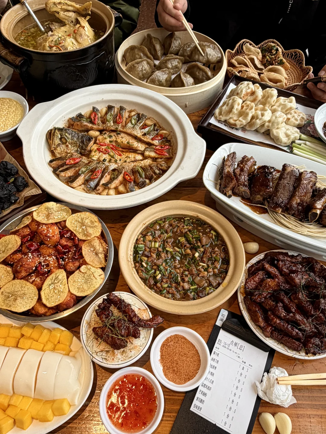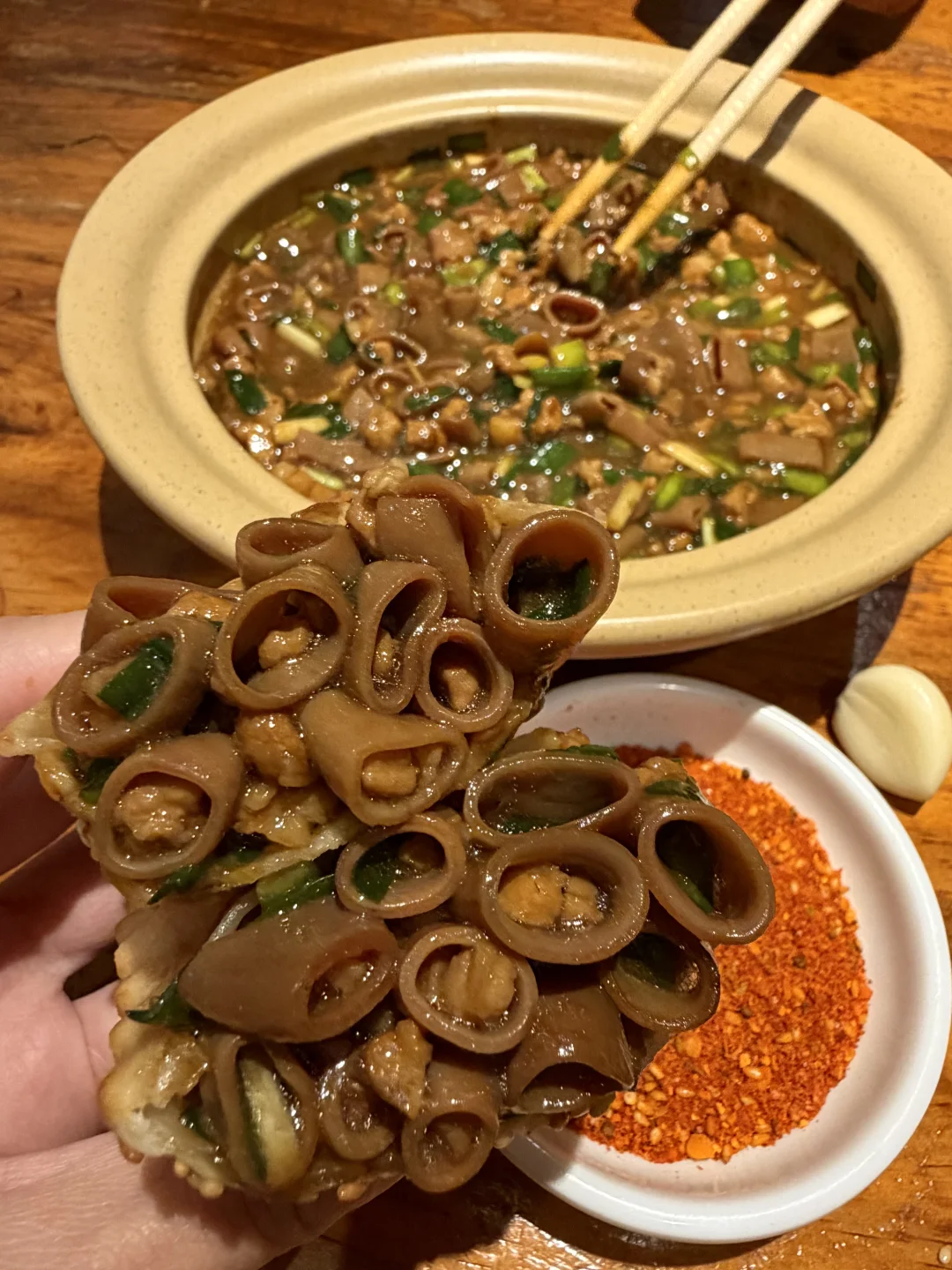 就在崂山脚下!! 本地朋友带我们去吃的…… - ✔️怪味里脊 里脊肉搭配柠檬叶🍋🟩好神奇的口感越吃越上头!! ✔️捞汁八爪鱼 八爪鱼肥嘟嘟🐙一口一个根本停不下来!!! ✔️柴火炖竹林老鸡汤 介个不愧是招牌!暖乎乎鸡汤一碗下肚贼落胃😭 ✔️海肠捞饭 终于吃上了正宗的海肠捞饭!脆脆的海肠搭配浓郁捞饭~一口气炫完一整碗🤤!!!