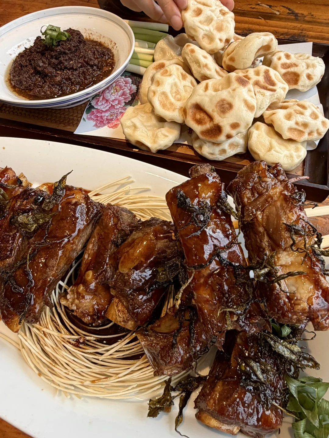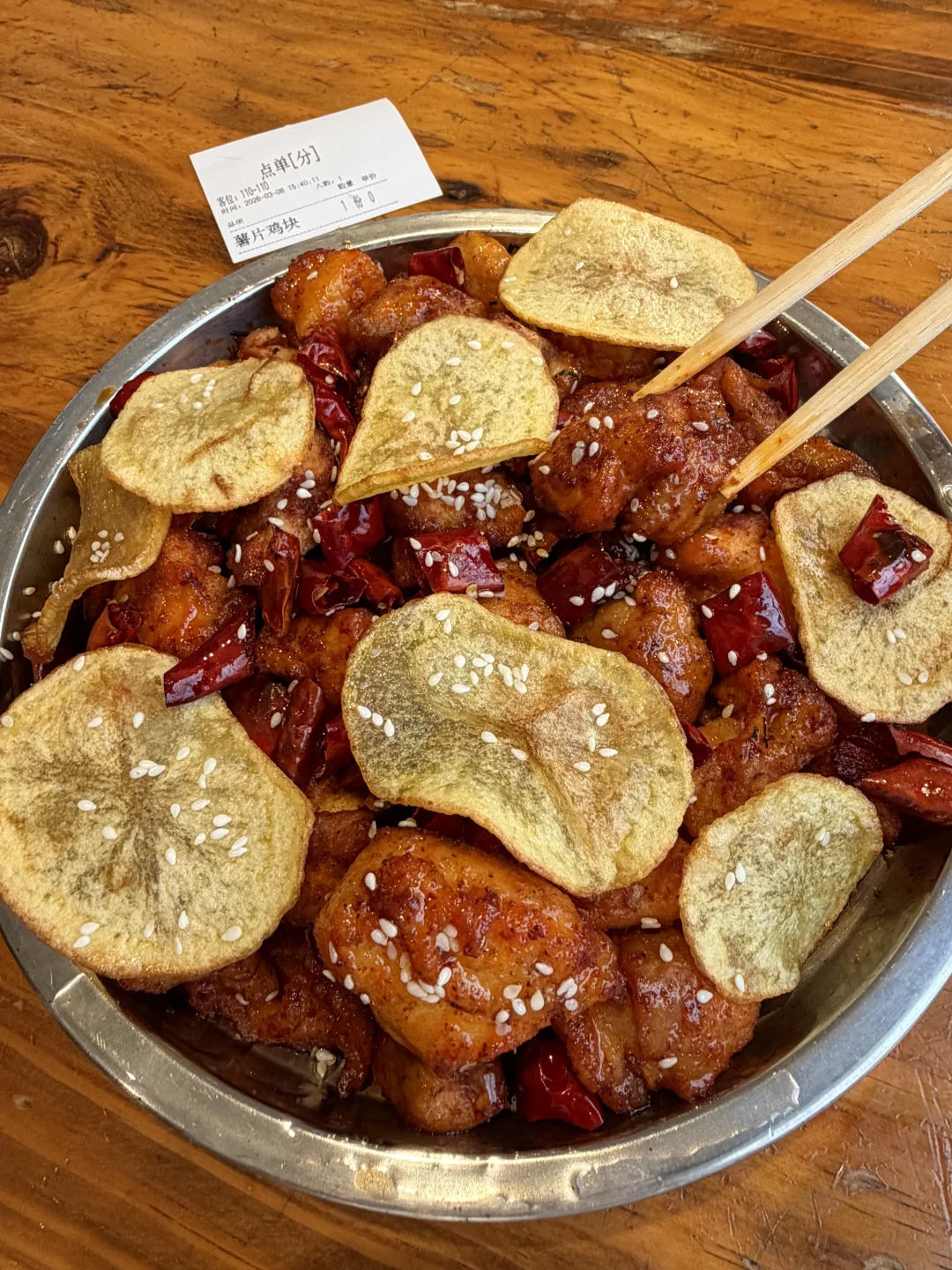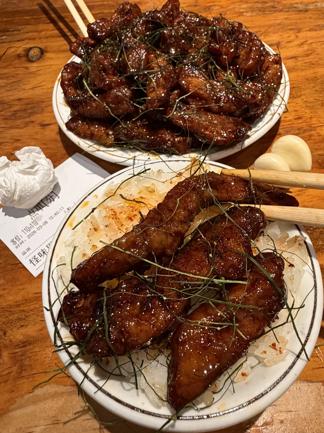 就在崂山脚下!! 本地朋友带我们去吃的…… - ✔️怪味里脊 里脊肉搭配柠檬叶🍋🟩好神奇的口感越吃越上头!! ✔️捞汁八爪鱼 八爪鱼肥嘟嘟🐙一口一个根本停不下来!!! ✔️柴火炖竹林老鸡汤 介个不愧是招牌!暖乎乎鸡汤一碗下肚贼落胃😭 ✔️海肠捞饭 终于吃上了正宗的海肠捞饭!脆脆的海肠搭配浓郁捞饭~一口气炫完一整碗🤤!!!