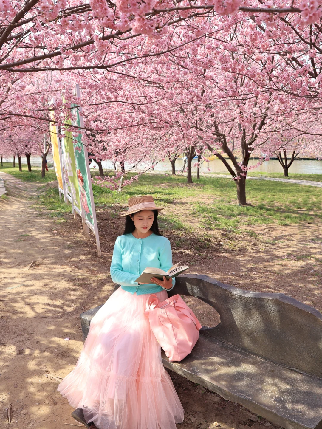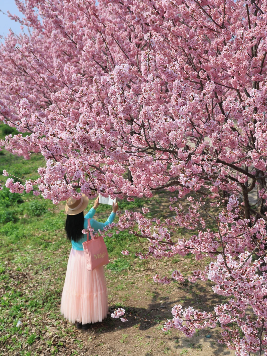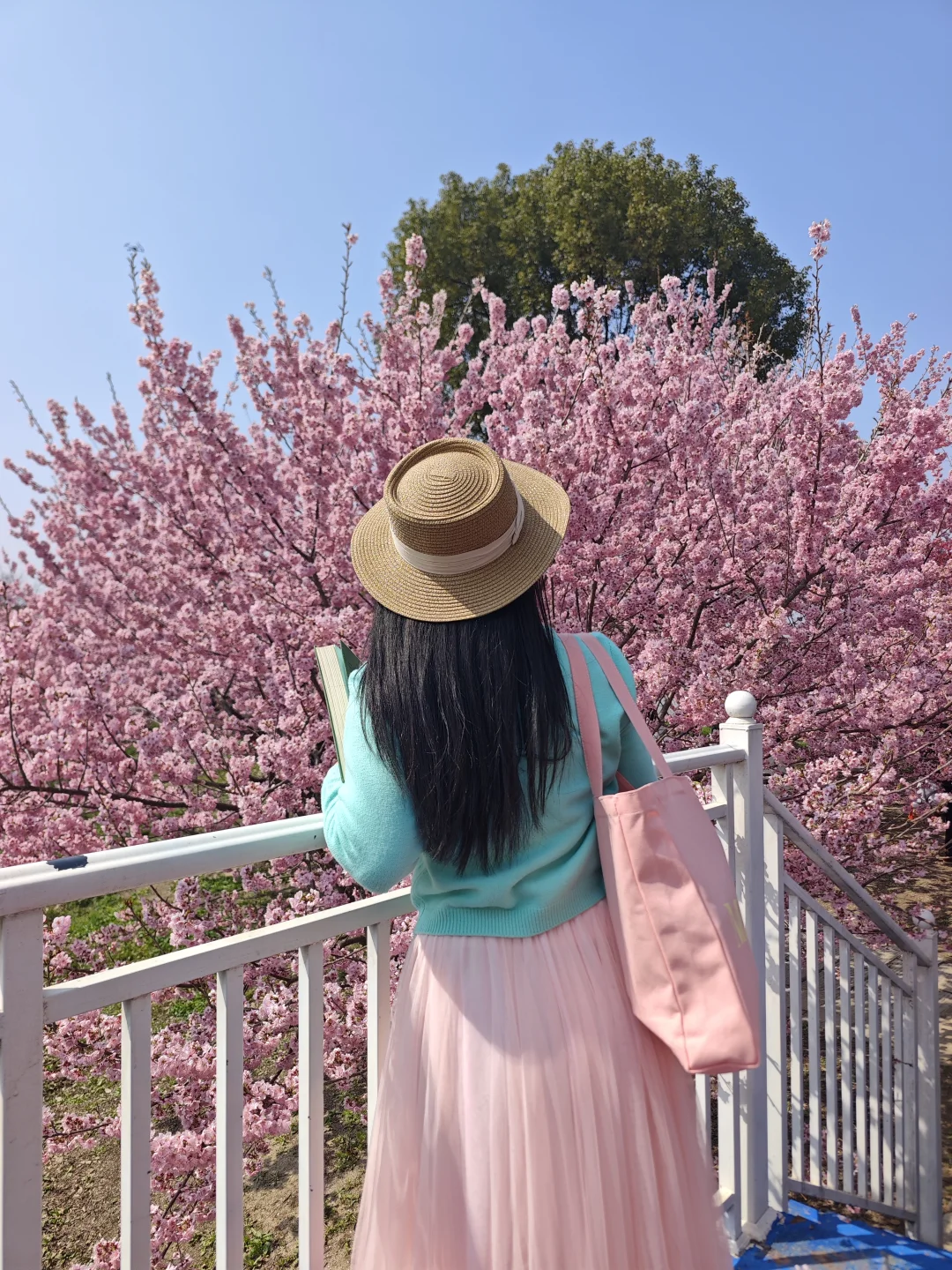 与春天撞个满怀🌸风已带春的味道,我于湖边樱花树下,与满枝温柔相拥。简单棕调