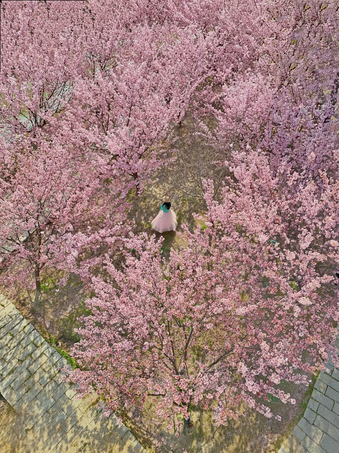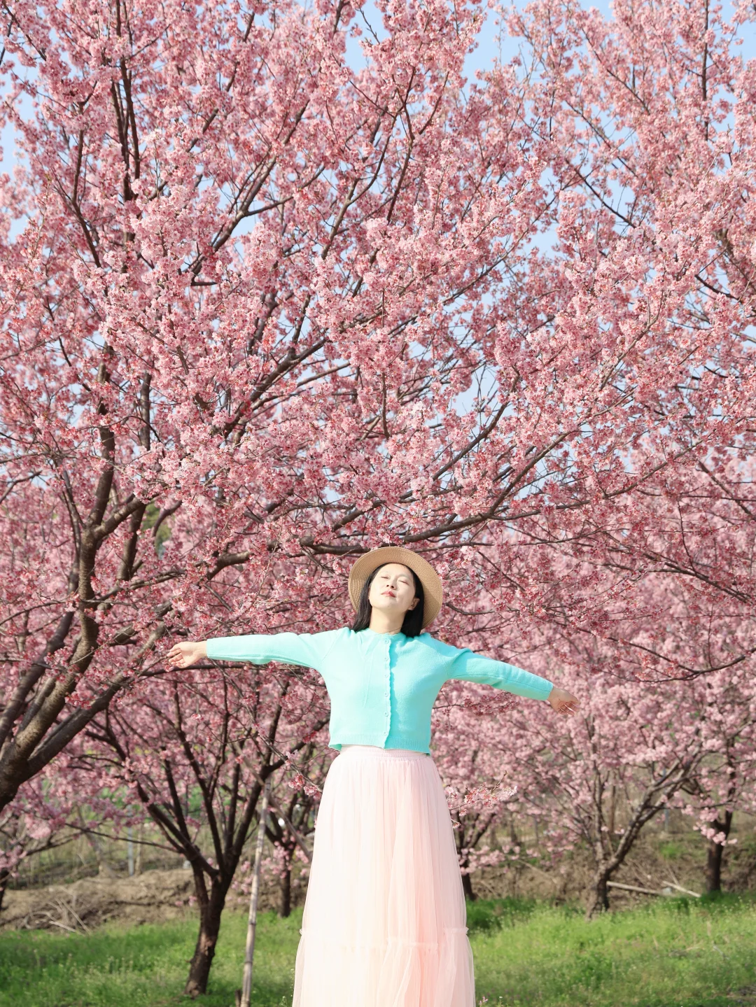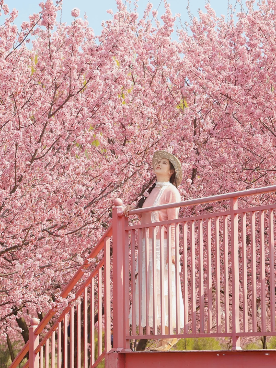 与春天撞个满怀🌸风已带春的味道,我于湖边樱花树下,与满枝温柔相拥。简单棕调