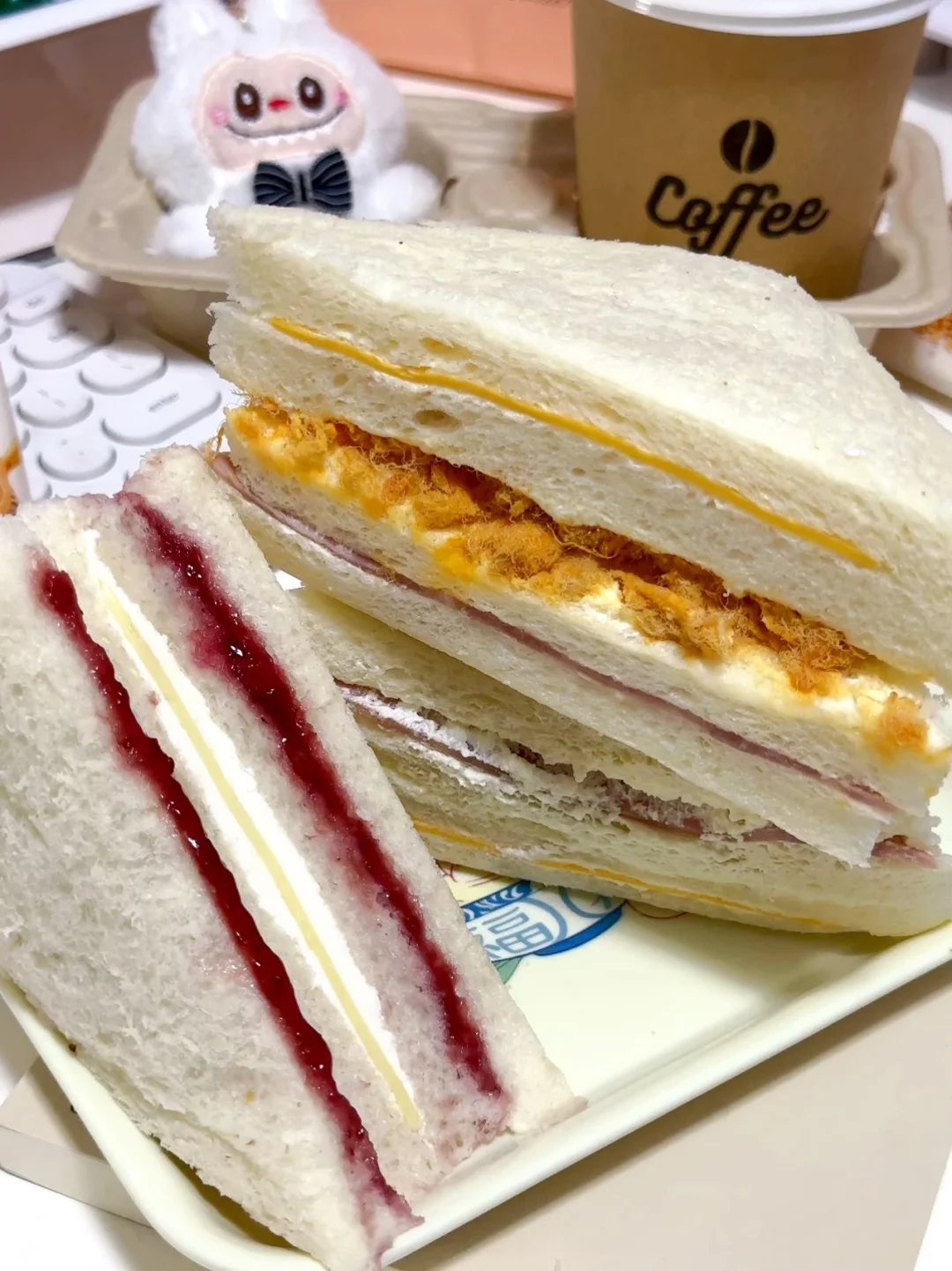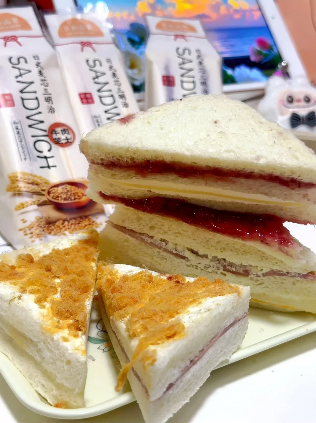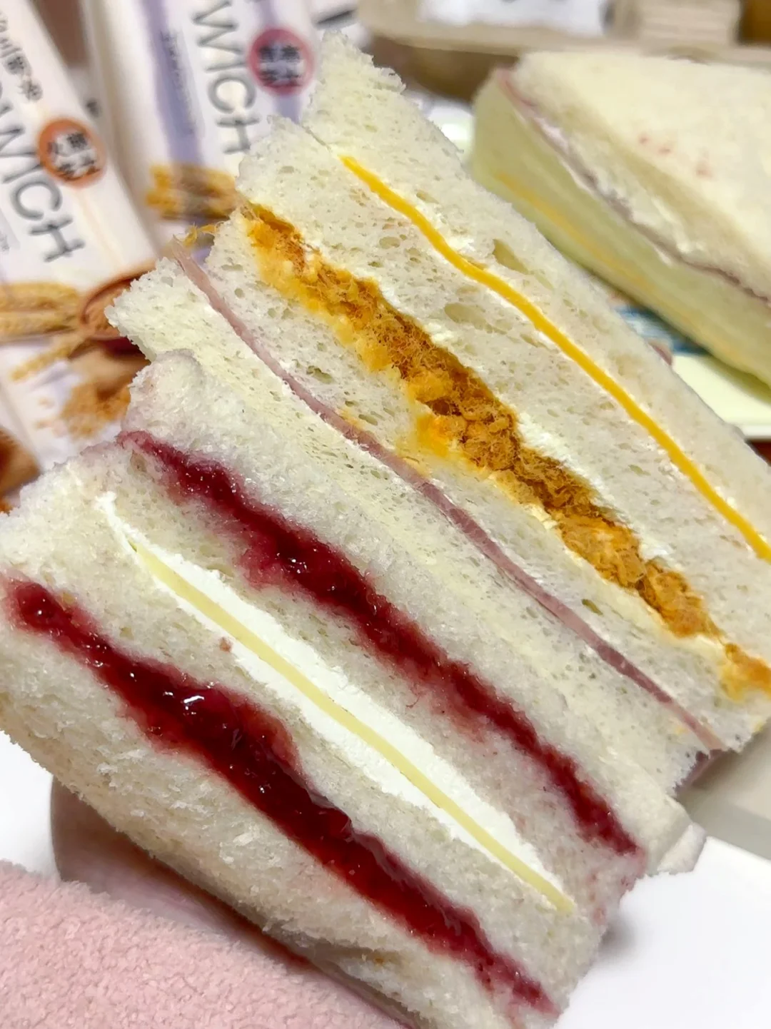 打工人再也不为早餐吃啥发愁啦 按头安利!这款日式三明治真的绝了! 4种口味可选! 火腿芝士/牛肉芝士/肉松火腿/草莓芝士… 面包体软得像云朵👍 最爱肉松火腿,用料十足,一口下去超满足 每天换着吃,一周早餐都被它承包啦!
