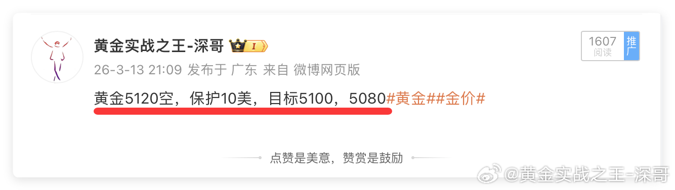 黄金5120空单,抵达5097出局,获利230点!👊今天周尾比较忙,没时间更新微博,晚上一腾出手来就是精准部署!空单策略一出黄金立马下行20美金空间!深哥的威慑力就这么威猛!👊
