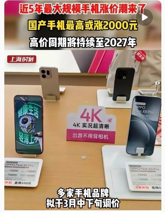 国产手机涨价2000元全行业普涨,折叠屏涨幅最猛!
