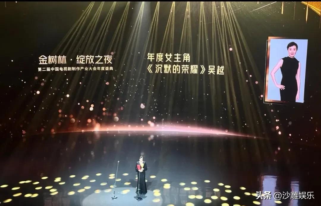 吴越,赢麻了! 3月13日的深圳,星光熠熠却又不失庄重。在“金树林·绽放之夜”第二届中国电视剧制作产业大会盛典上,有一幕堪称“神仙打架”的名场面。 当颁奖嘉宾念出吴越的名字时,镜头扫过台下:杨紫、孙俪、杨幂、赵露思......那一刻,台下坐的不是竞争对手,而是一排满脸写着“服气”的观众 。 说实话,看看今年“年度女主角”的提名名单,那叫一个“死亡之组”。杨紫的《国色芳华》带着文化出海的余温,孙俪的《蛮好的人生》本就是收视女王的标准配置,杨幂在《生万物》里颠覆形象转型,赵露思的《许我耀眼》更是流量密码 。 可最后,这块“硬骨头”被 《沉默的荣耀》里的吴越 啃下来了。 走上领奖台的吴越,没有夸张的礼裙,依旧是标志性的利落短发,一袭简约黑色长裙,脖颈间的钻石项链成了点睛之笔,衬得她温婉大气。手里的奖杯沉甸甸,但她的眼神里除了激动,更多的是清澈 。 发表获奖感言时,吴越的声音依然温柔且有力量:“这份荣耀让我记住做演员是多么幸福的事,它不属于我一个人,属于《沉默的荣耀》所有台前幕后的创作者,有你们的保驾护航我才可以成为朱枫。” 一番话,既感恩了角色,又致敬了团队。这种刻在骨子里的修养,真的装不出来 。 在这个流量即正义的年代,吴越简直是内娱的“异类”。 细看这次入围的女演员,孙俪是公认的“视后级”,杨紫、赵露思带着巨大的流量,但吴越赢在哪儿?赢在 “无痕” 。 在《沉默的荣耀》里,她不是那个曾经被骂上热搜的“凌玲”,也不是《县委大院》里的女干部,她就是朱枫本人。有网友辣评:“看吴越演戏,你记不住吴越,只能记住角色,这就是剧抛脸的降维打击。” 吴越的这次封后,其实给了行业一记温柔的耳光。 在这个人均“85花”“95花”争奇斗艳的时代,吴越用实力证明了:热搜会过期,流量会褪色,但角色永远活着。53岁的她,不婚不育,没绯闻,把半生都献给了片场。她从不争抢所谓的“大女主”,却活成了所有大女主想要成为的样子 。 那些提名的年轻花旦们,输给吴越,不丢人。因为这恰恰说明,这个圈子的审美,还没彻底坏掉。对于观众来说,看着吴越站在聚光灯下,就好像看到了好演员的春天。