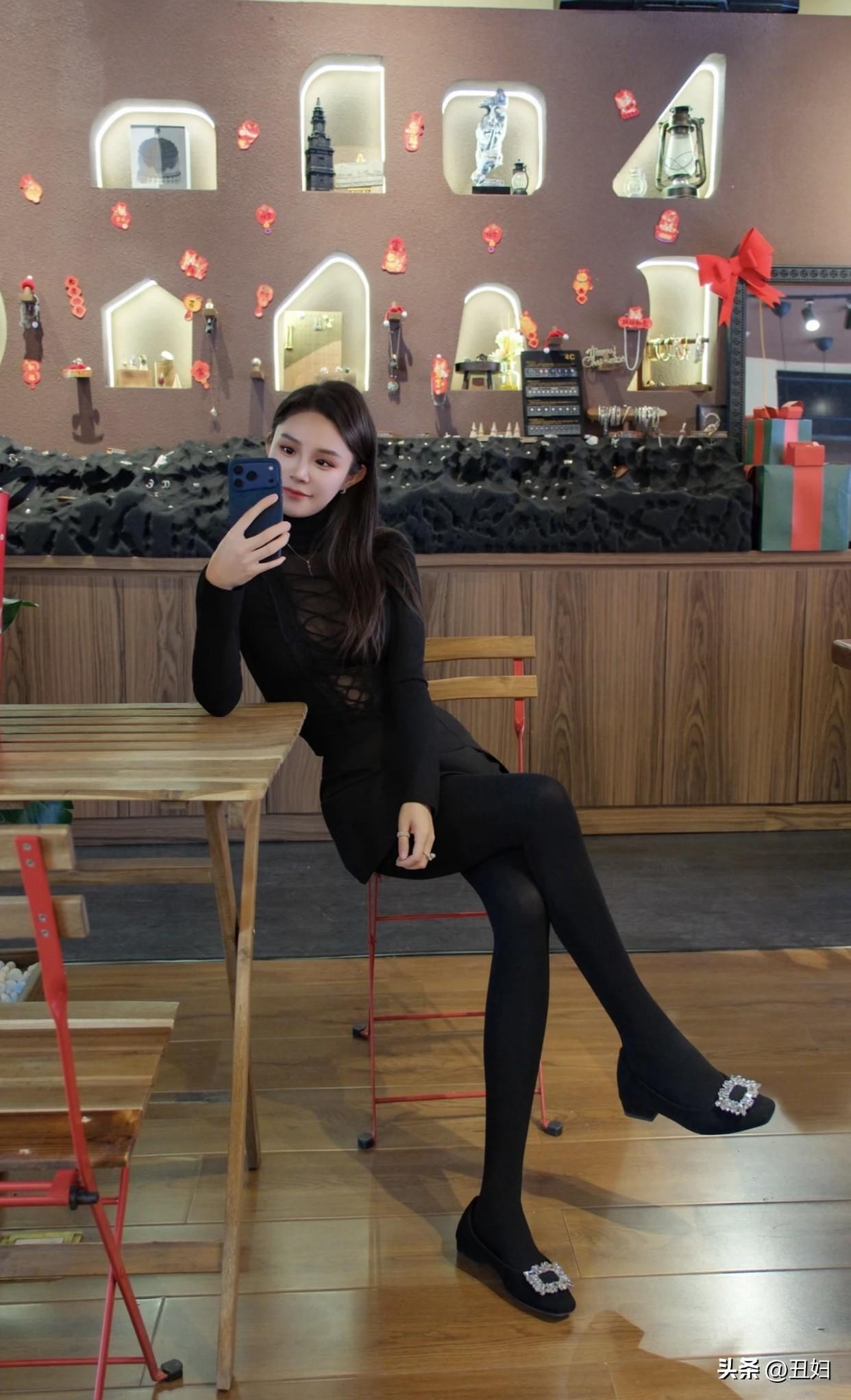 有没有好看的轻熟风搭配推荐黑色紧身上衣配黑色半身裙,温柔且成熟。