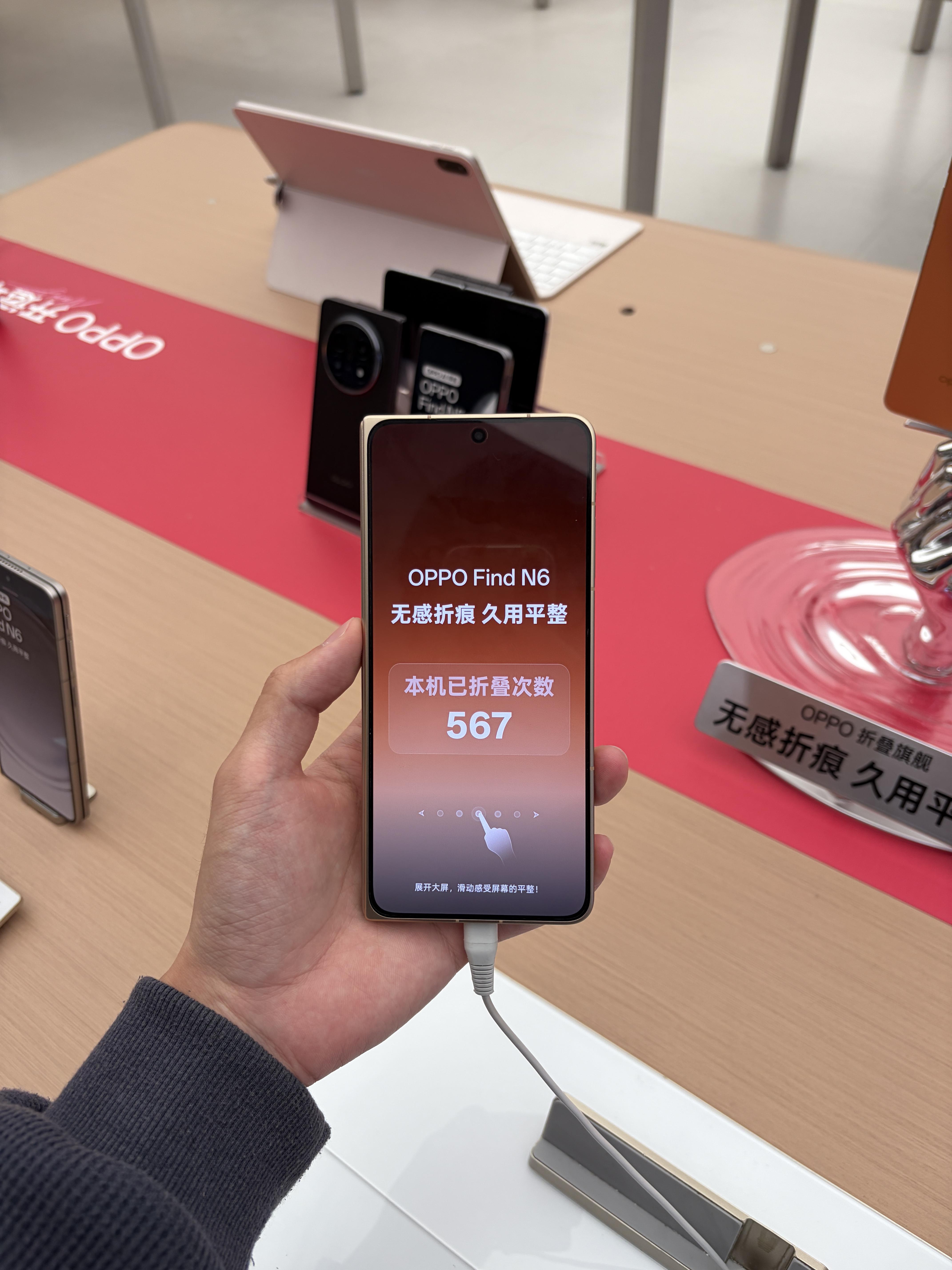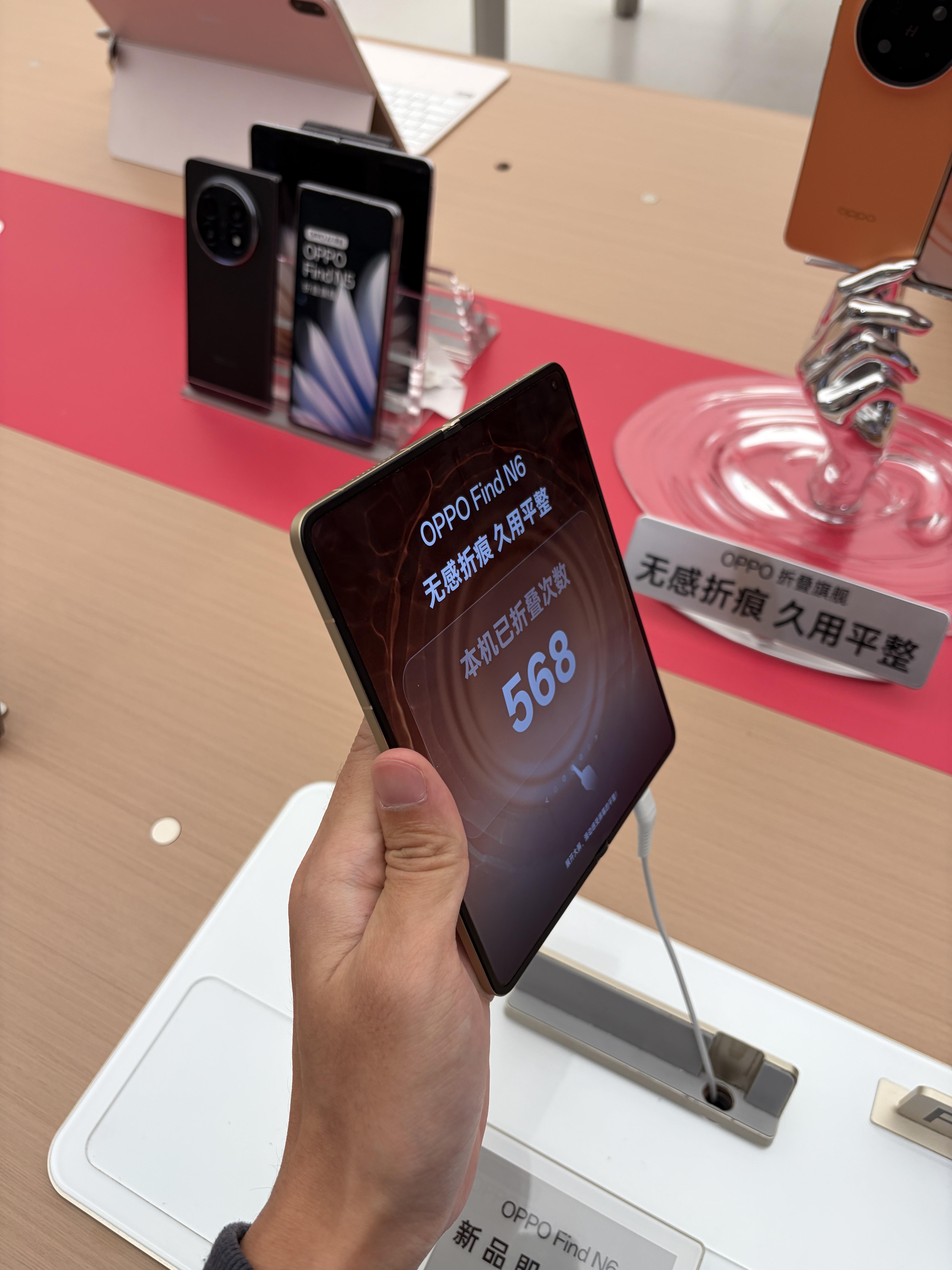 然后他就让我去OPPO看下Find N6,我心想就算看不到也一定摸得到