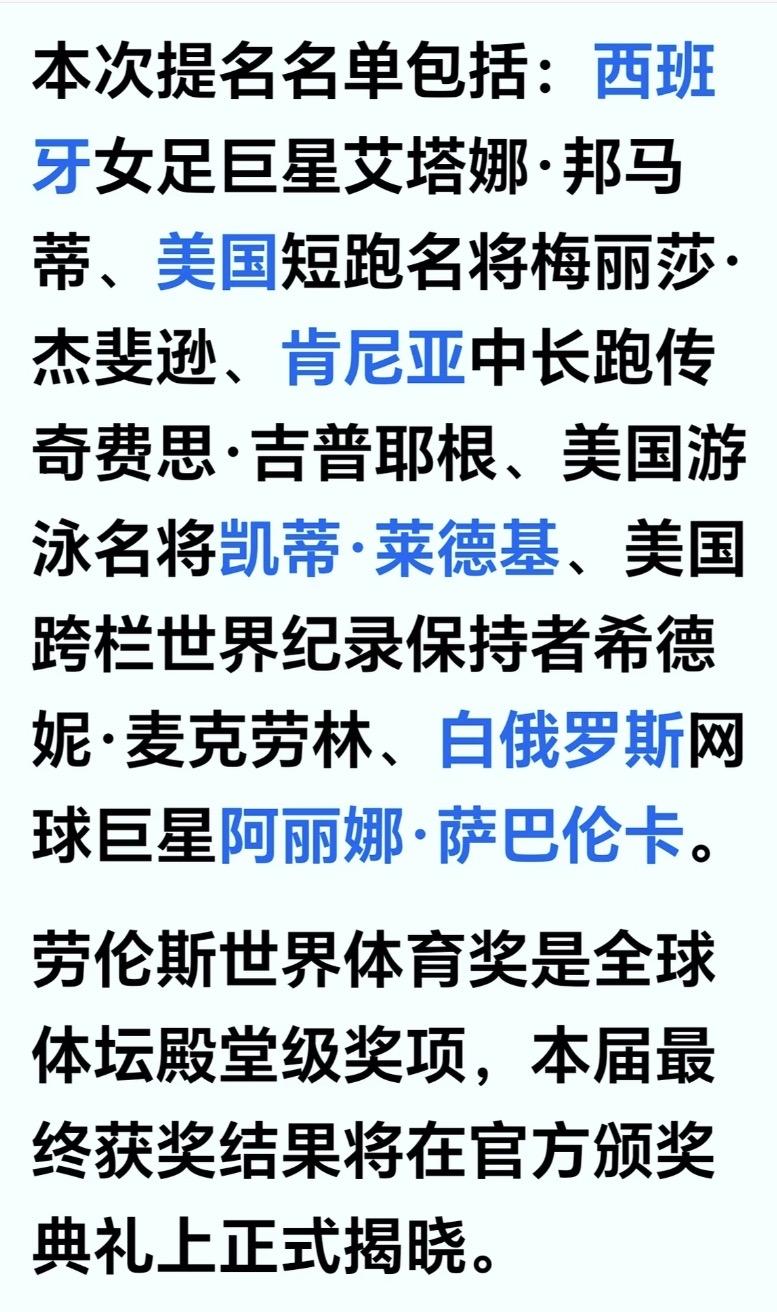 笑陈芋汐"没拿到劳伦斯奖"? 你先搞清楚那六个人拿的是什么奖 陈芋汐落选2026劳伦斯最终提名。 有人嘲笑了:“吹半天,奖呢?” "劳伦斯奖怎么不见踪影"? "被水冲走了,看不见"…… 行。那今天就把账算清楚一一 中国体育史上,拿到劳伦斯奖的, 一共六个人。 来,看看这六个人拿的是什么奖: 一、姚明(篮球) 2003年:最佳新人奖 2015年:体育精神奖 二、刘翔(田径) 2005年:最佳突破奖 三、李娜(网球) 2015年:特别成就奖 四、谷爱凌(自由式滑雪) 2023年:最佳极限运动员奖 五、夏伯渝(登山) 2019年:最佳体育时刻奖 六、蒋裕燕(残疾人游泳) 2024年:最佳残疾运动员奖 看清楚了吗? 六个人,没有一个拿的是 "劳伦斯年度最佳运动员"。 这是劳伦斯含金量最高的核心奖项。 全球几十亿人盯着,网球、田径、 足球那些现象级巨星抢破头。 而陈芋汐拿到的, 是"劳伦斯年度最佳女运动员提名"。 2026年,全中国现役运动员,就她一个。 劳伦斯是什么?体坛奥斯卡。 全球体育最高荣誉。 中国🇨🇳奥运冠军多如牛毛, 但能拿到劳伦斯奖的, 整个历史,就六个。 而陈芋汐是中国体育史上第一位 入围这个核心奖项的现役女运动员。 有人说:"提名又不是获奖。" 对,提名不是获奖。 但你知道那六个人里, 有几个拿过这个提名吗? 一一李娜拿过。 2015年,年度最佳女运动员提名。 然后呢?然后就没有然后了。 十二年过去了, 第二个能站到这个门槛前的 中国女运动员,叫陈芋汐。 跳水,女子10米台,小项目, 没流量,没商业价值,没人盯着看。 但她在项目里留下的东西, 够那些笑的人背三遍: 世锦赛四冠王,世界杯总决赛四连冠, 双人跳大满贯,全满贯,无一败绩 , 创造5项世界之最,36次摘取世界冠军, 成为中国🇨🇳体坛最年轻的"多金王"。 这不是吹出来的。 这是裁判一张一张打出来的分数, 是金牌一块一块堆出来的高度。 劳伦斯奖六个人,是中国体育的骄傲。 但他们拿的,都不是那个最硬的奖。 陈芋汐没拿到奖杯。 但她站到了那扇门前一一十二年来, 中国女运动员只有两个人站到过那里。 一个叫李娜。一个叫陈芋汐。 有人笑她“被水冲走了”。 水能冲走什么? 冲走无知,冲走偏见, 冲走只会看热闹的嘴。 冲不走的,是成绩。 一一提名,有时候比获奖更难。 因为那扇门,不是谁都能敲开的。