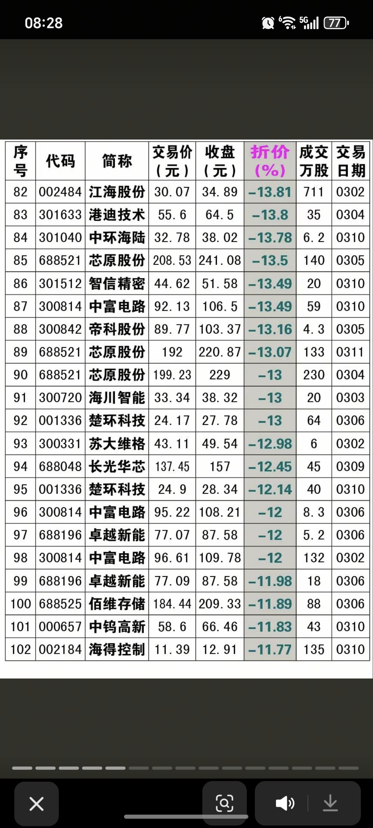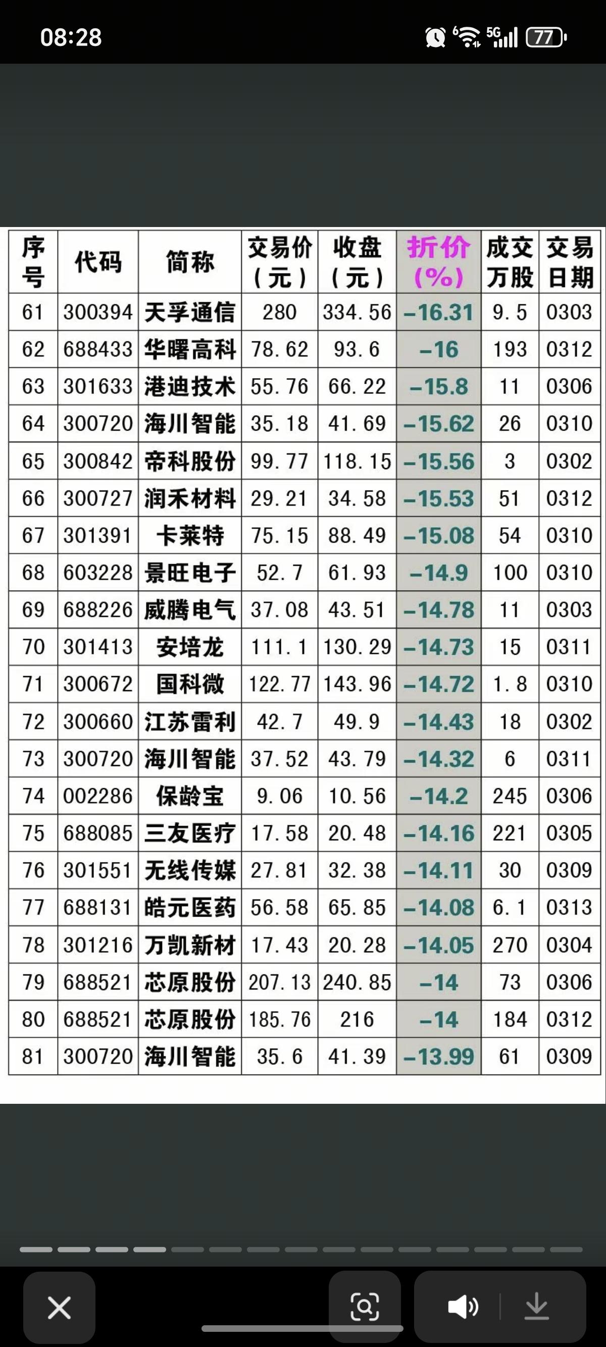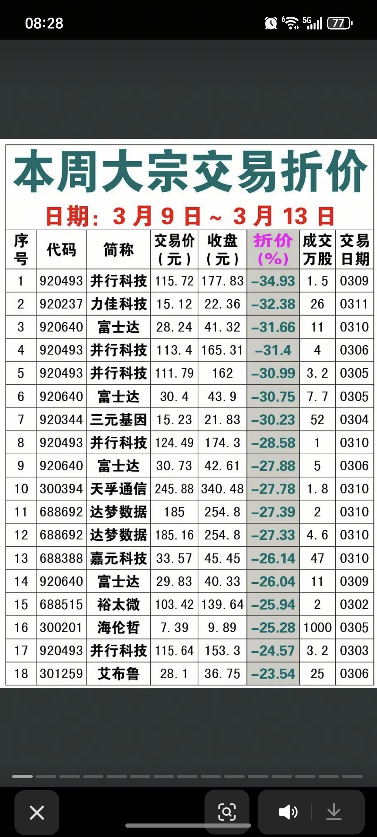3.14周六 本周大宗交易溢价/折价汇总 18家公司大宗交易,溢价成交 10