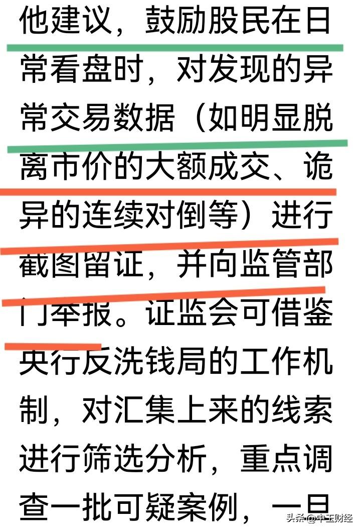 【315之际:教授对证券市场发展的建议!】一年一度的消费者权益保护日即将来临,这位教授为证券市场发展提出一条建议——发动广大中小投资者的力量,打一场“人民战争”。 此建议针对的是什么呢?是异常交易、内幕交易、操纵股价等行为,让中小投资者对异动数据进行截屏举报。 实际上,交易所的人工智能监控以及云监督管理,难道真的无法实时监控股价异动吗?让广大民众通过截图举报来参与打击上述行为,实际上,这一举措还可拓展至财务造假、IPO内幕交易等领域。若中小投资者在研究年报时发现异常关联交易等财务包装造假行为,完全可以截图并提供给监管部门。 说实话,从全球证券市场的发展情况来看,教授高呼证券市场的“人民战争”,A股恐怕是首例。实际上,一切都需依靠法治、法律以及市场化的完善,采取严刑峻法或许更为稳妥!证券市场规范法 股市内幕交易 证券发展史 证券政策 股民讲大盘