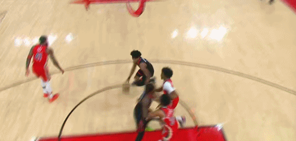 天赋尽显!阿门起飞双手隔扣墨菲! 在今天NBA常规赛鹈鹕对阵火箭的第一节比赛中,