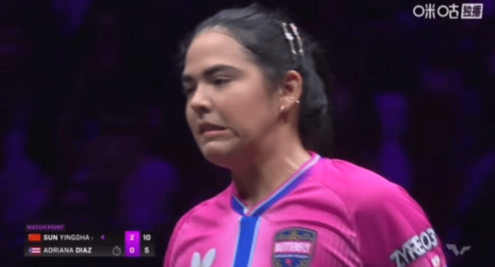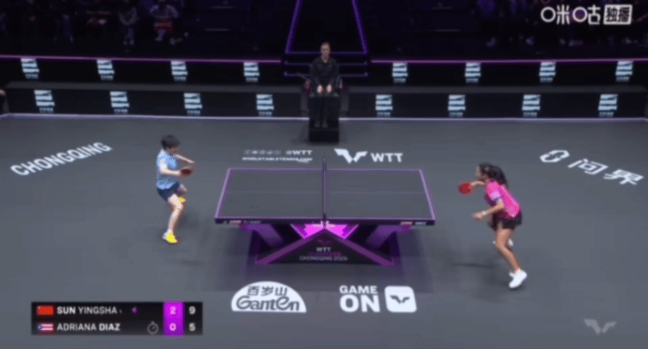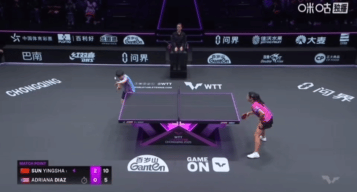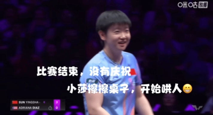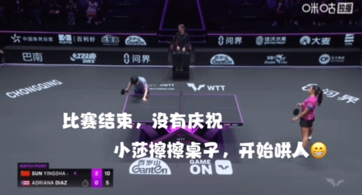 莎莎和迪亚兹完全不敢对视,一对视就会笑,小迪变成小包子,最后莎莎擦擦桌子,开始哄人了😁 重庆冠军赛,两个小姐妹又遇到一起了,这场比赛,莎莎完全掌控节奏, 小迪的侧切和反手弹击都没用出来,被莎莎限制。 最后两个球,小迪来了两个灵感球,被莎莎一个正手,一个反手,结束了。 10:5的时候,小迪就变成小包子了,比赛一打完,莎莎没有庆祝,擦擦桌子,赶紧哄人,一刻也不能耽误😁 莎莎的变化要比小迪多很多,还是有很大差距的。