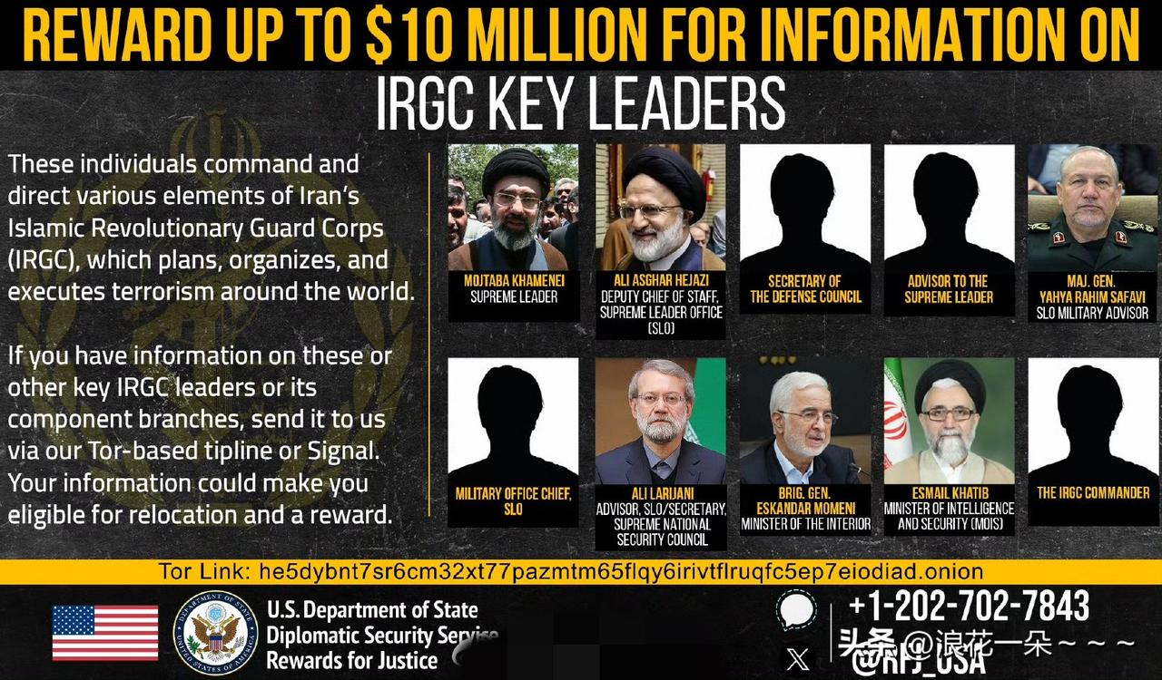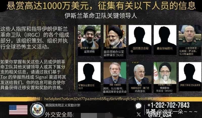 据华尔街日报: 美国国务院公布最新的“正义奖励”计划?悬赏高达1000万美元,征集伊斯兰革命卫队关键领导人信息。 如果举报成功了有可能获得迁移安置和奖励的资格。 怎么说呢,看到这个奖励计划,我感觉看美国最近的情报可能断掉了,毕竟伊朗最近抓了很多“内鬼”嘛。同时也可以清楚的看到,为啥伊朗之前那么多高官被暗杀,也许就是美国在背后通关情报人员掌握了关键领导人的信息,当然是使用金钱来激励“内鬼”去干活的。 所以伊朗得防着点。