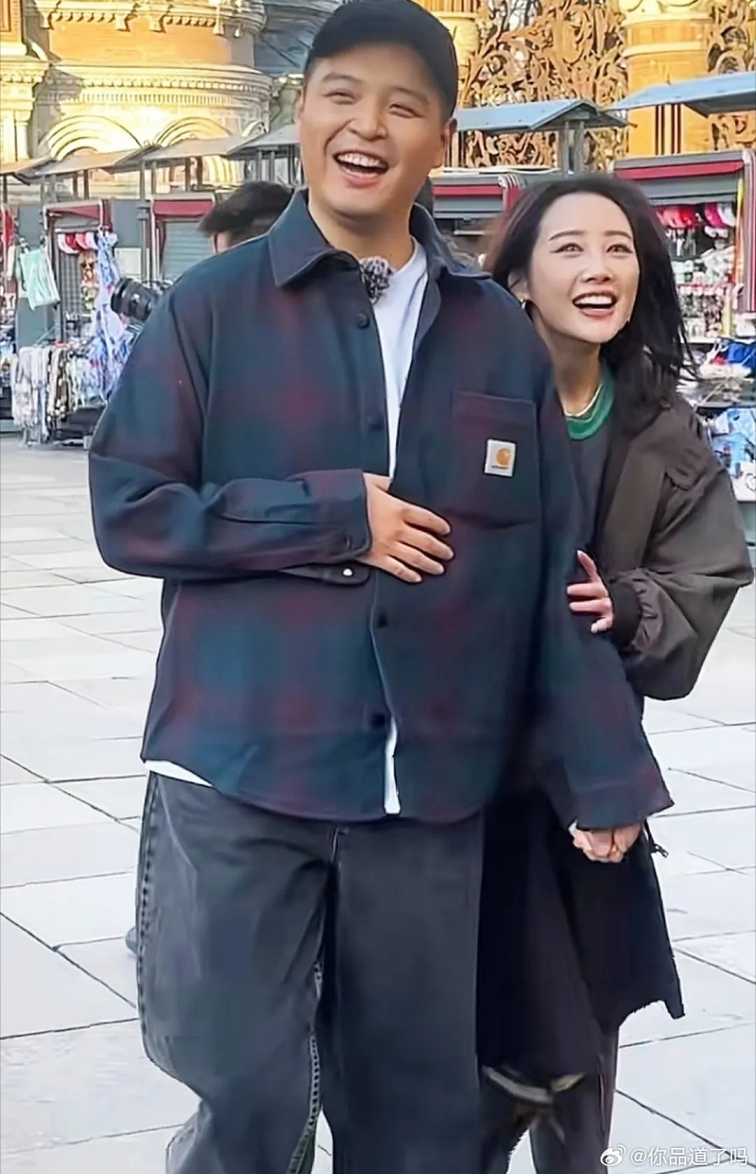 马頔还是印象中自带幽默感的模样,和老婆走在一起还多了几分憨厚气质,两人看起来挺般配的。