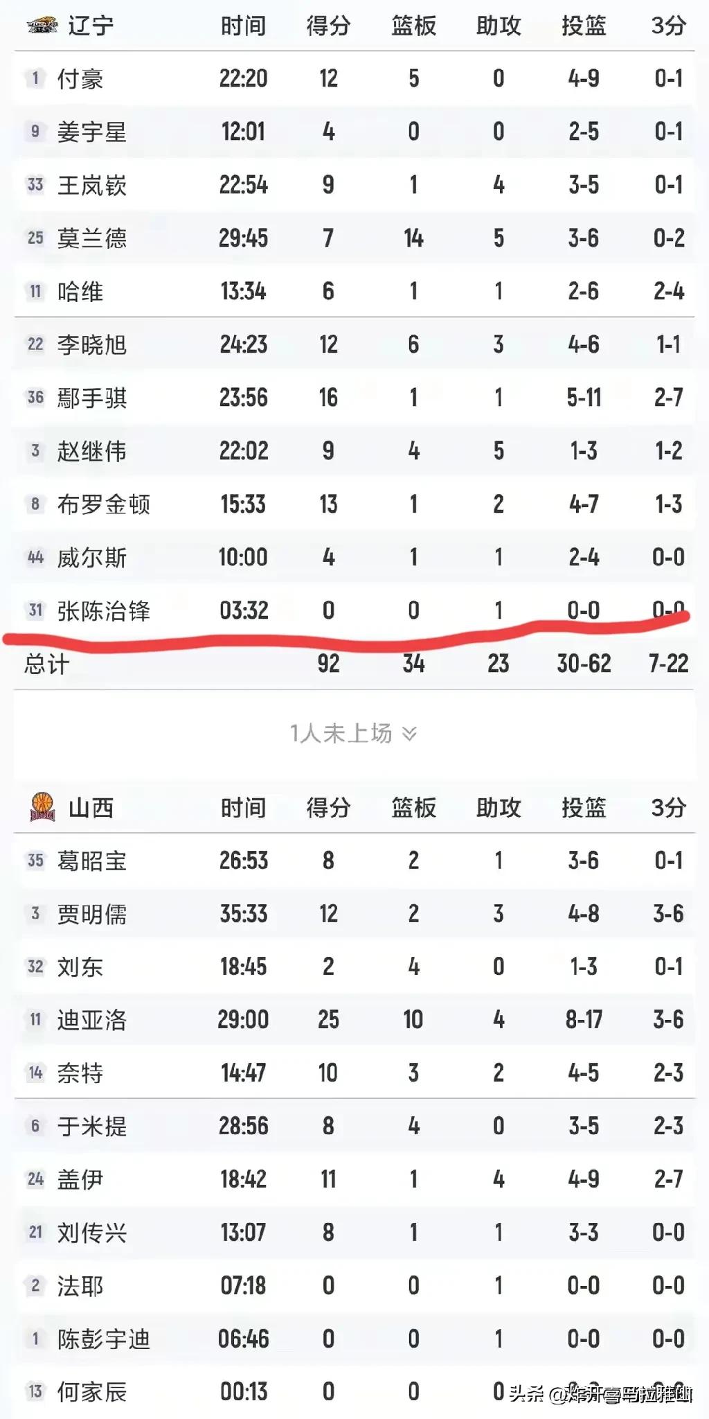 辽宁队内线张陈治锋这个赛季是没有什么机会了! 在乌戈教练上任后张陈治锋的出场时间