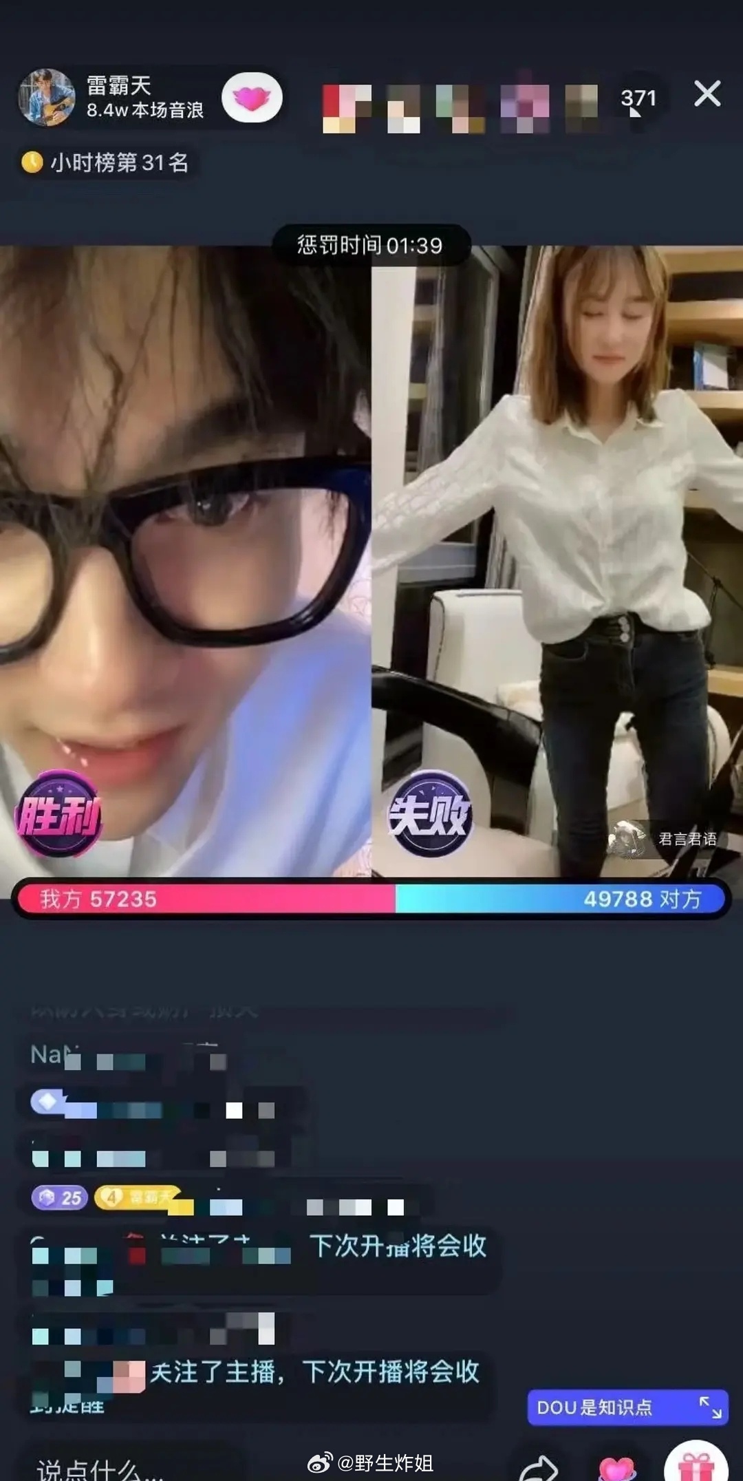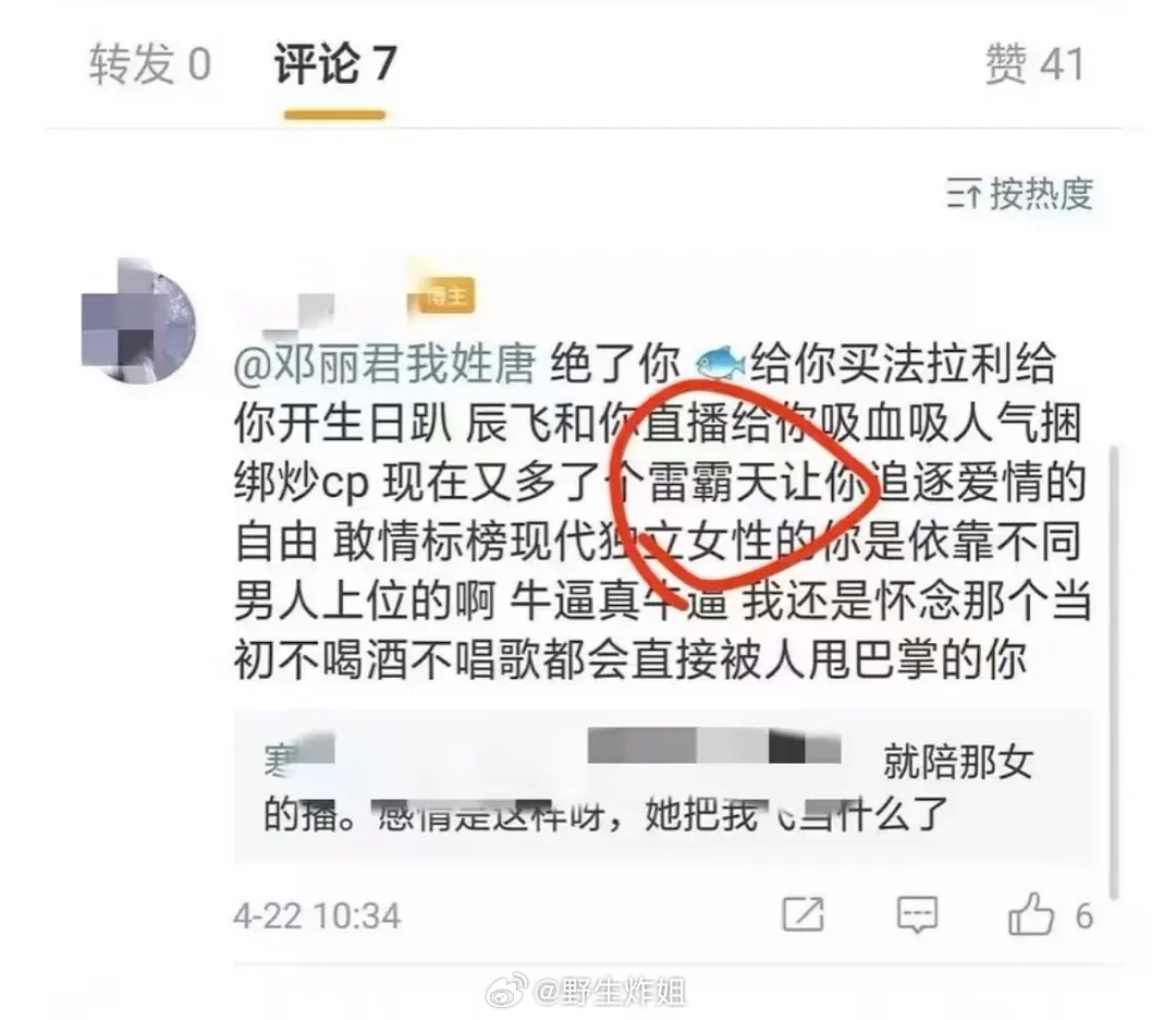锤:君君男友放出的聊天记录里出现“小鲜肉”雷霸天,疑似天雷当男小三。同时前嫂苏苏与天雷复合后在围脖骂君君纠缠天雷。天雷本人和君君评论、连麦互动过。