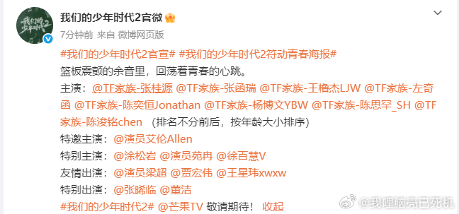 我们的少年时代2青春的心跳四代按年龄大小排序 四代按年龄大小排序,我们的少年时代2青春的心跳,期待住和少年们的热血故事的正式见面啦,终于等到官宣啦~