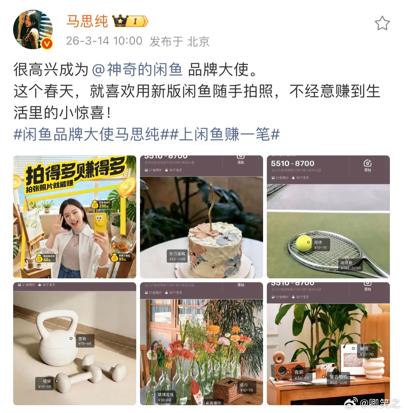 马思纯生日 闲鱼闲鱼品牌大使马思纯上闲鱼赚一笔 马思纯你也太有生活了吧,恭喜姐姐