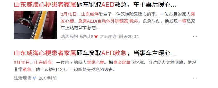 “太有人情味了!”3月10日,山东威海,一患者突发心梗,急需AED(自动体外除颤器)救命,情急之下,家属砸坏路边一辆车的车窗,取走车上的AED应急,车主知道后,表示砸就砸吧,人命比玻璃重要!网友:大爱之举! 山东威海,2025年3月的那声玻璃碎裂声,直到今天想起来,依然让人觉得心惊肉跳,又带着一种莫名的温热。当时,一位市民就在自家的马路牙子上,眼睁睁看着家属突然倒地,脸色瞬间变了。那是急性心梗,留给一个人的时间,满打满算也就四五分钟。那时候,每一秒钟的流逝都像是在往死神怀里推人。家属一边抖着手打120,一边从电话那头的医生口中听到一个生疏的词儿:AED。 在那条并不算宽阔的街道上,医生的语气急促得像开火,“必须马上找AED,不然人救不回来”。那是决定生死存亡的最后一道防线。绝望是什么滋味?大概就是你看遍了周围的门头房,却发现没有一家店、一个公共服务台能掏出这台救命的机器。就在这命悬一线的时候,路边一辆私家车引起了家属的注意。车窗上那个醒目的红标识,像是一个发光的求救信号——那是车主李先生自己贴上去的。 那一刻,电话号码成了连接生死的唯一纽带。可是,电话拨过去,却没人接。一遍、两遍、三遍……那种呼救得不到回应的恐惧,几乎能把人逼疯。 当时的李先生正窝在家里补觉,手机静音,外界的一切兵荒马乱他都浑然不知。眼瞅着患者的气息越来越弱,家属咬咬牙,干了一件惊天动地的事。 “咣当”一声。那声脆响在威海街头显得格外突兀。玻璃渣子碎了一地,一只手伸进车厢,粗暴地扯出了那台红色的“傻瓜”除颤仪。很多人不理解,为什么要叫它傻瓜机器?因为它一旦开启,语音指令就会直接接管现场,手把手教你贴片、按压,哪怕你是个医学小白。 它比人脑更冷静。机器会自动扫描患者的心律,确认是不是发生了心室颤动。只有真正到了非电击不可的地步,它才会释放那股重启生命的电流。 那几分钟,这台机器在车窗的残片中,代替了尚未赶到的医生。万幸的是,它成功了。电流划过,停滞的心脏重新找回了节律。 等到患者脱离了危险,这事儿还没完。家属并没有跑路,而是哆嗦着手通过微信联系到了李先生。他满心愧疚,主动道歉,说要赔钱修车。李先生那时候刚睡醒,看着满屏的未接来电和道歉信,愣了一会儿,随即敲下了那行让无数人泪目的话。他说,看到电话了,如果有需要,“砸就砸吧,人命抵不过一块破碎的玻璃”。没有愤怒,没有推诿,只有一种令人肃然起敬的豁达。 后来我们才知道,李先生这台AED也不是白捡的。2025年2月,他被一段科普视频触动,二话没说,自费买了一台,成了街道上流动的救命站。他原本只是想当个预防针,总觉得这辈子最好都别用上。谁能想到,这根自费购买的“救命稻草”,刚装上不到一个月,就真的钓回了一个生命。 站在2026年的今天,我们回看威海的这一砸,砸开的不仅是私家车的屏障,更是敲碎了某种冷漠的社会壁垒。这块玻璃在市面上也就值几百块钱,但在那种极端的时刻,它就是一个人的全部未来。这种“紧急避险”与“大度宽容”的撞击,实在漂亮。 有人问,李先生后悔吗?他后来对媒体说,他坚持要自己掏钱修车。对他而言,能用一台机器换回一条人命,这买卖简直赚翻了。其实这也是一种警示。既然公共AED配置还做不到像路灯一样密集,像李先生这样的个人英雄行为,就成了城市最暖心的补充方案。 那种愿意把车窗当作救命阀门的豁达,和家属那种敢于为了生命破坏规则的决断,在2025年的那个春天,完成了一场最完美的配合。诚然,我们要追求的远景,是不需要任何人去砸玻璃。但在那一刻,李先生的“砸就砸吧”,成了那个时代关于文明和良知最掷地有声的回答。 直到现在,这个故事依然在提醒我们:所谓的格局,就是当你把生命放在天平的那一端时,其它的重量,真的都可以忽略不计。那种“备而不用”的善意,终究在那个特殊的日子里,变成了一道光。它不仅照亮了威海,也照进了每一个听过这个故事的人的心里。