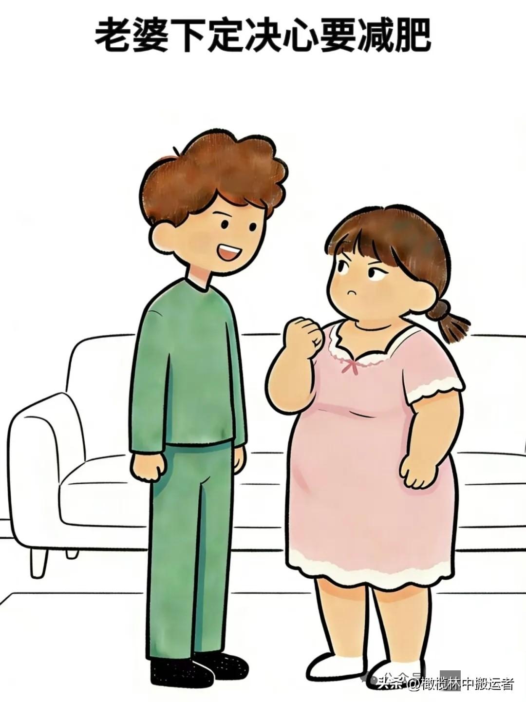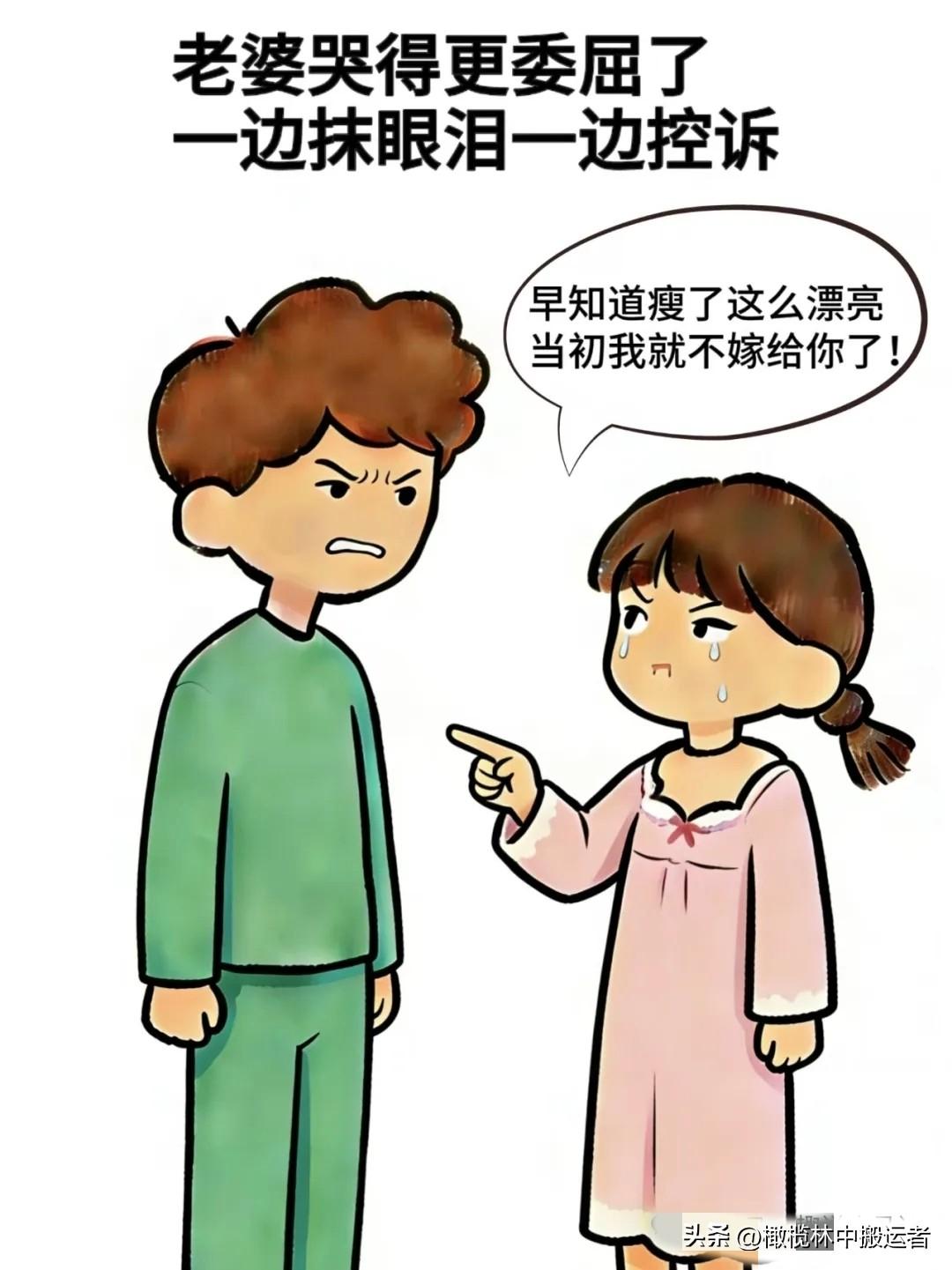 趣味漫画:老婆瘦身成功了,老公:老婆,你真漂亮,老婆不开心,老公:瘦了挺好的,怎还不开心,老婆:早知瘦了这么美,当初就不嫁给你了