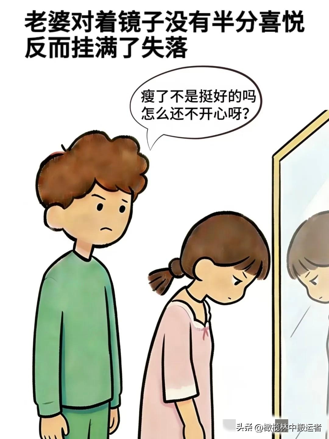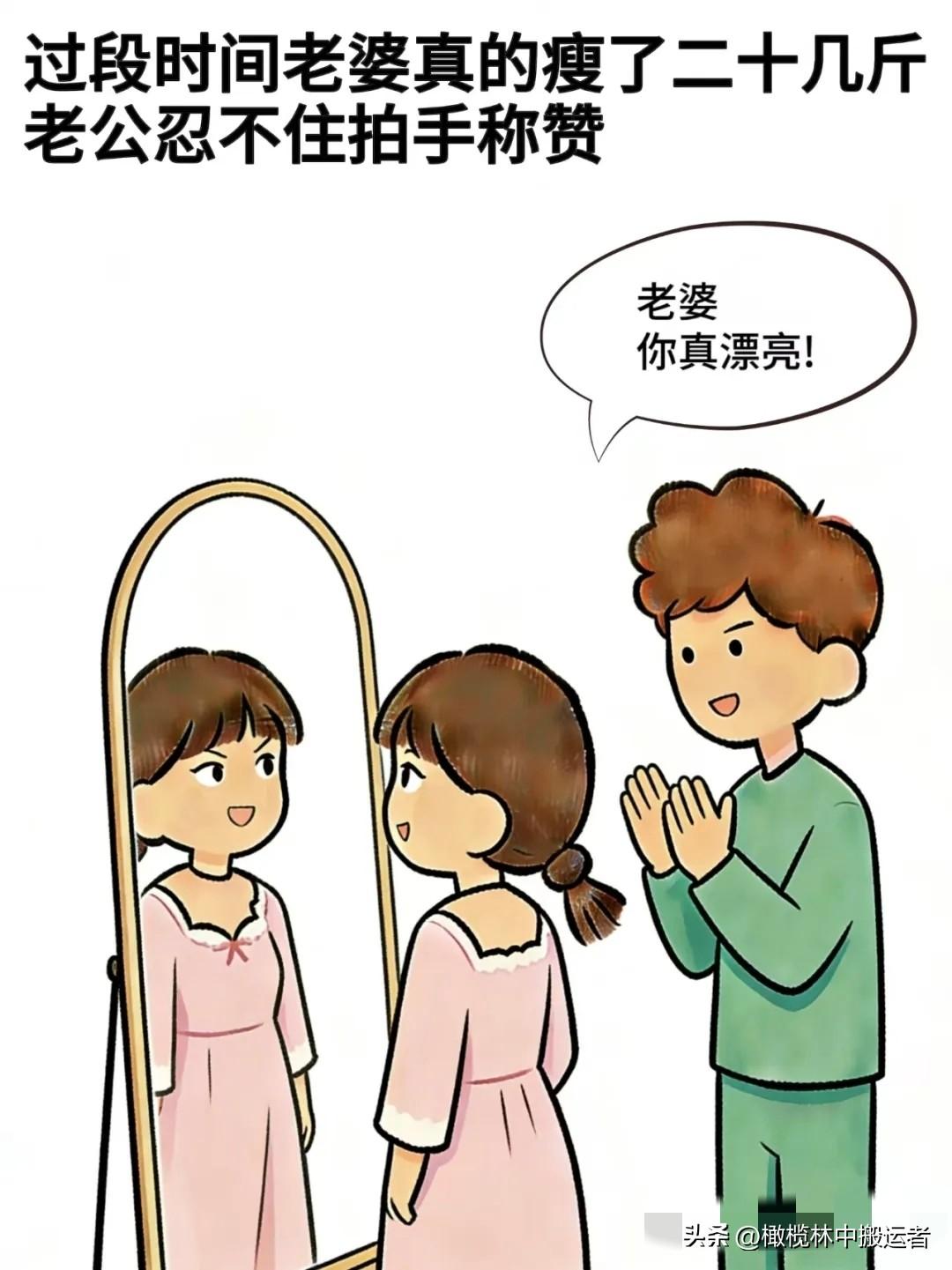 趣味漫画:老婆瘦身成功了,老公:老婆,你真漂亮,老婆不开心,老公:瘦了挺好的,怎
