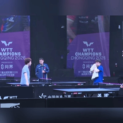 3.14日,莎莎又调皮了,模仿别人像是在跳舞,和coco斗嘴“吵架”,超级可爱。 图1,莎莎在模仿别人打球,看起来像是跳舞,她的模仿能力超强,超可爱的。 图2-3,师徒开始拌嘴式聊天,coco说不过莎莎的时候,就会哈哈大笑,抓着莎莎的胳膊开始笑了,莎莎也会时不时给一个白眼, 表现出无奈的表情,老co也是很好玩的。 图4,莎莎和蒯曼在赛前训练,今天是她俩的内战。 比赛加油,一切顺利!