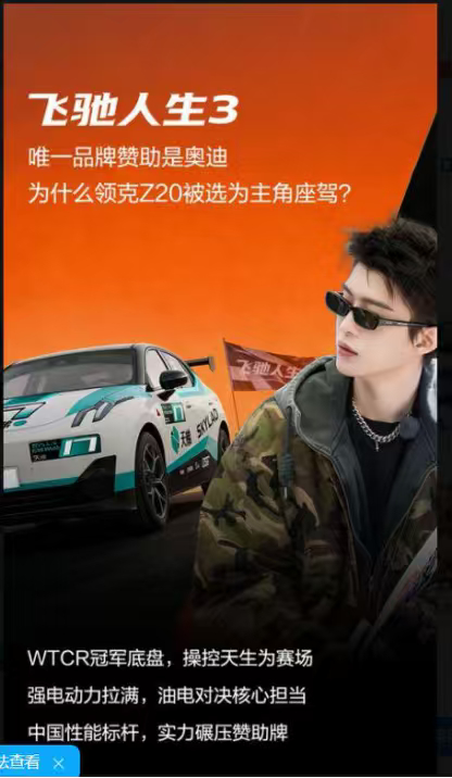 《飞驰人生 3》国产品牌独苗!领克 Z20 以纯电性能迎战合资,彰显中国智造的赛