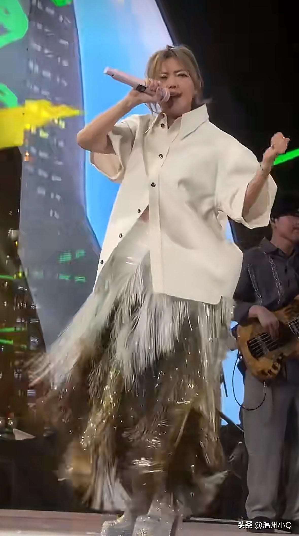 我的天啊,万万没想到孙燕姿这身衣服还是葆蝶家的新款,但天后上身效果好臃肿,衬衣和裙子完全不配。