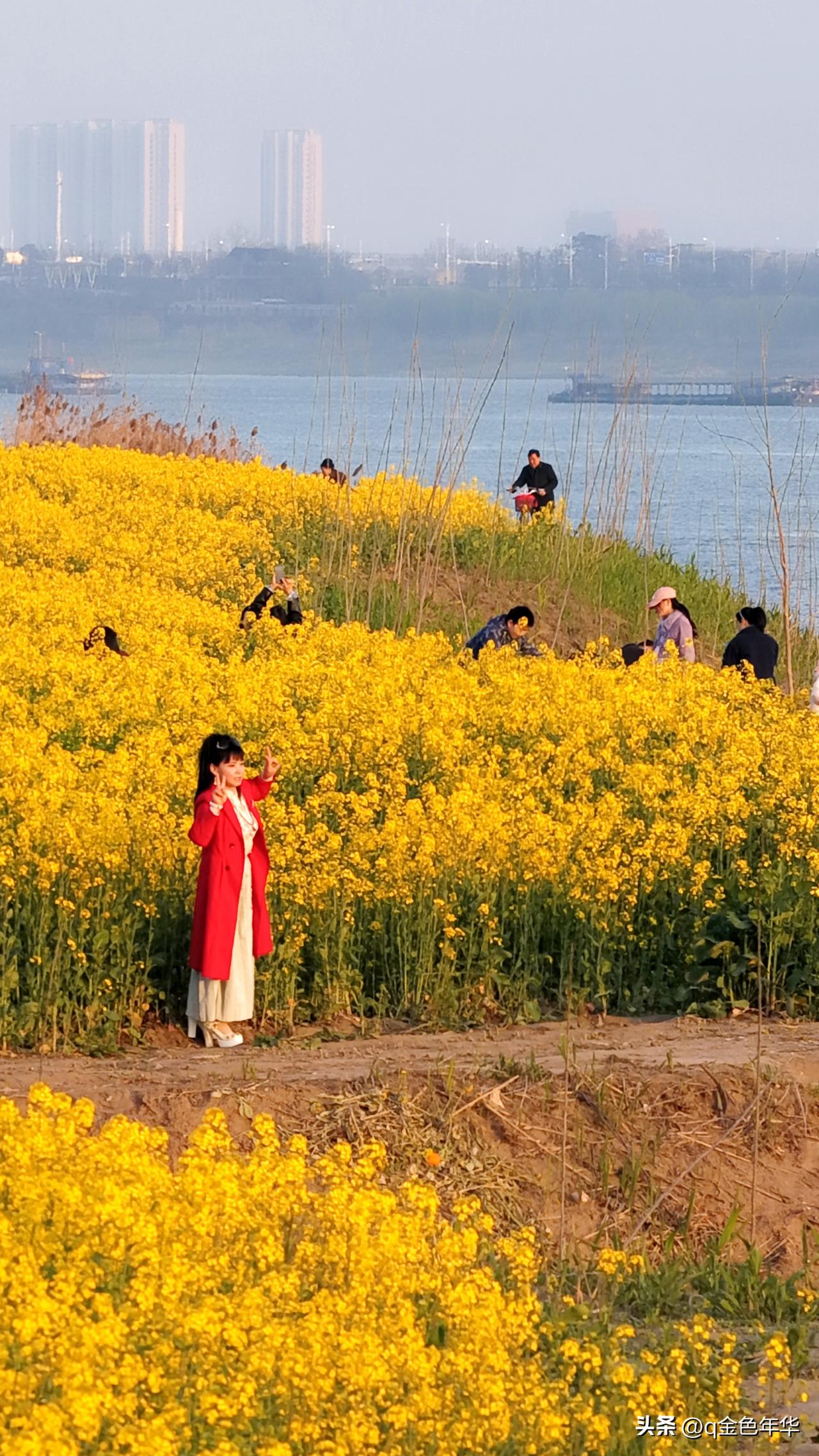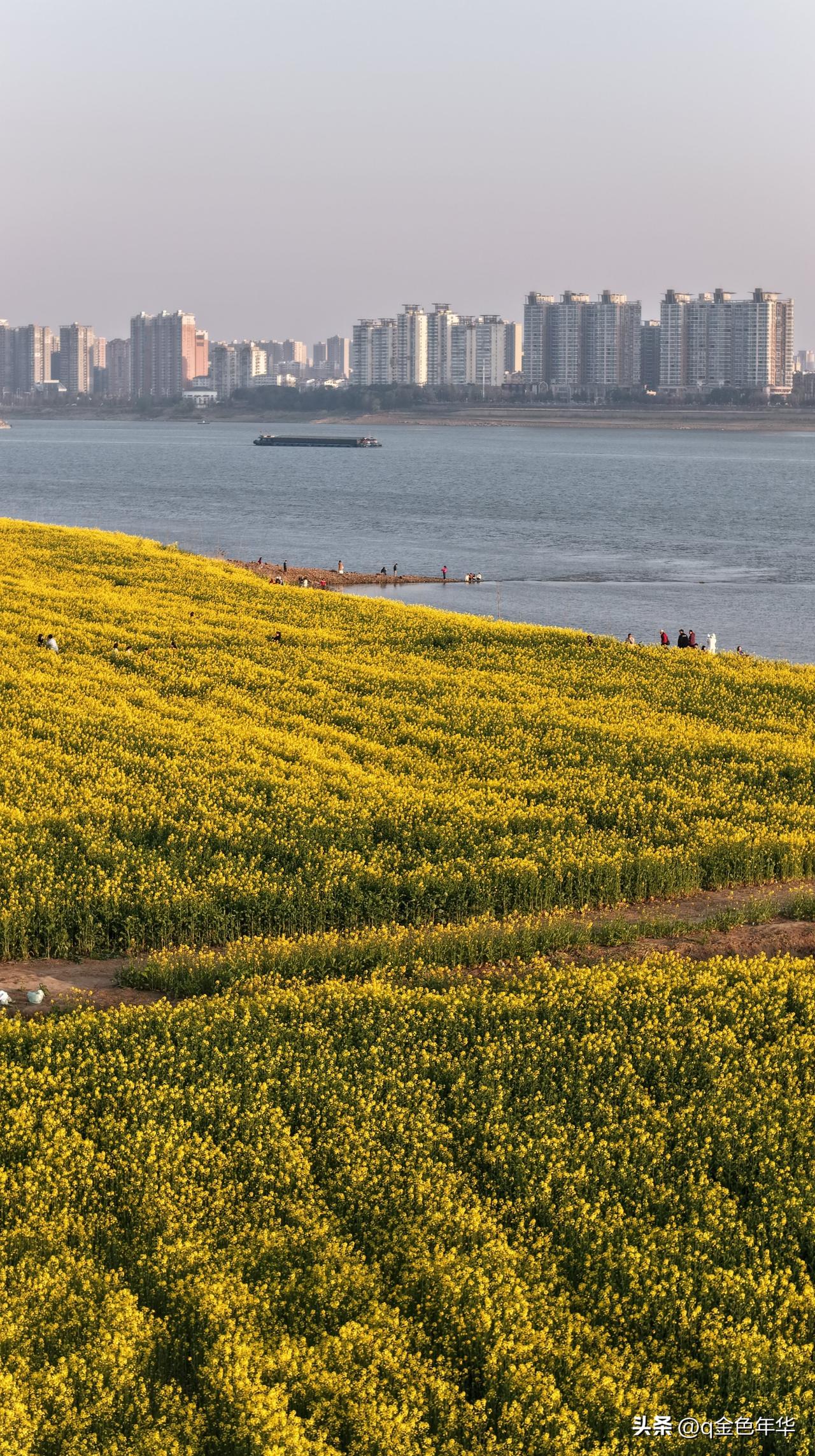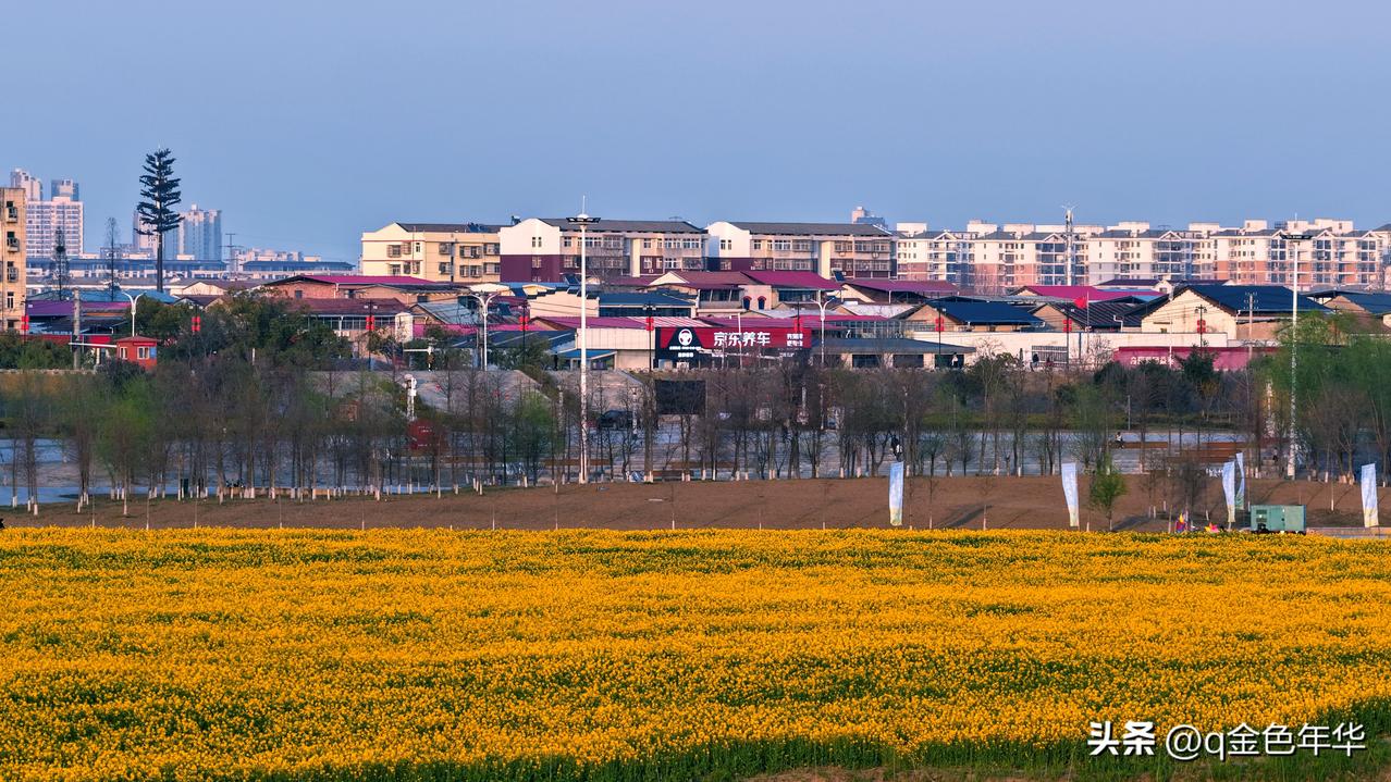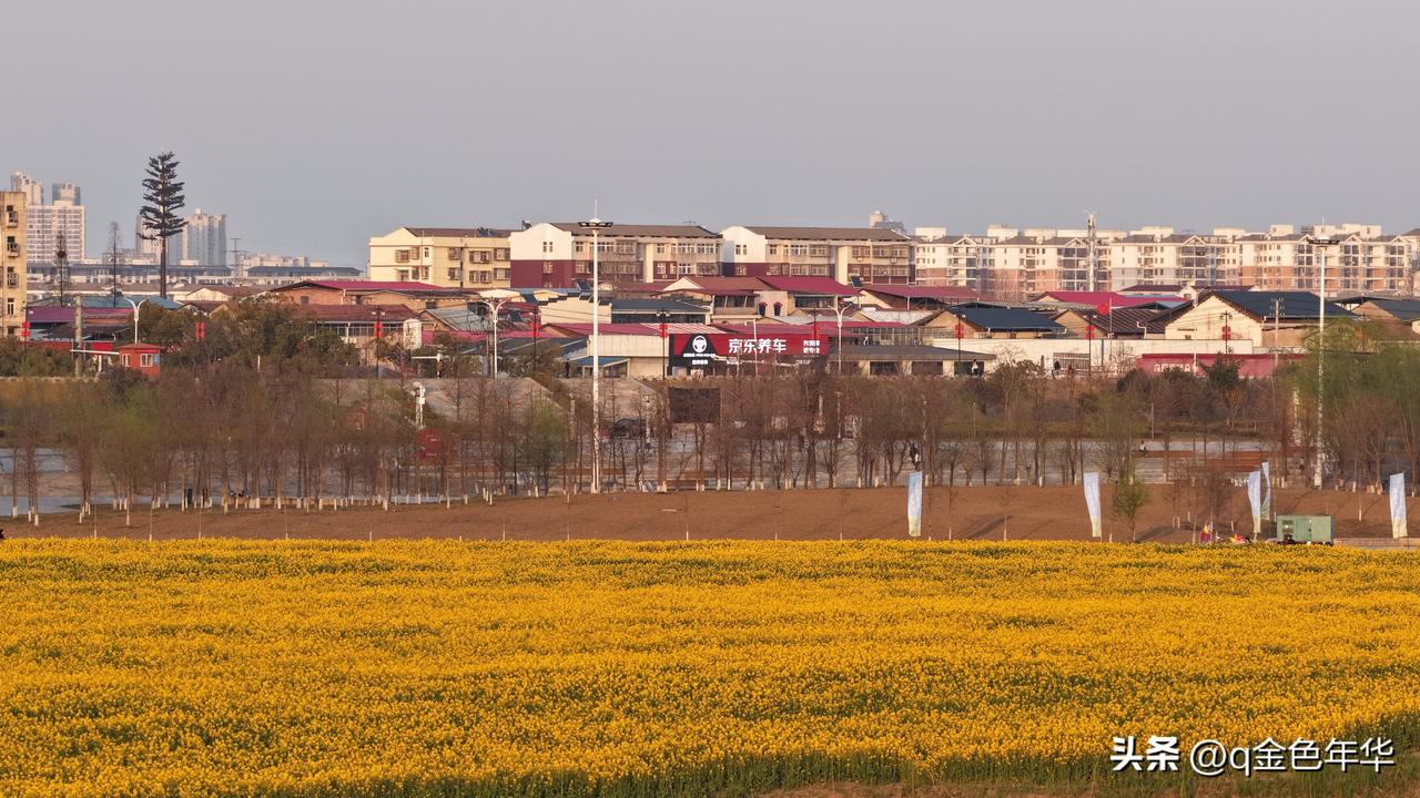 黄州江滩,赴一场金色之约: 黄州江滩公园千亩油菜花已盛放,金黄浪潮铺满江畔,与碧波、蓝天相映成趣,绘就绝美春日画卷!千亩花田沿长江堤岸铺展,被蜿蜒江堤分割成错落金色块,江风拂过,花枝摇曳生姿,与粼粼江水共绘温柔电影滤镜。 一边是城市烟火,一边是自然诗意,极简春日美学在此绽放。花田地势平坦开阔,适合全家春游、野餐遛娃,漫步其间,随手一拍便是清新田园写真。 第二届江滩油菜花季已启幕,花期从本周持续至4月初,诚邀你选个晴日,漫步江堤,邂逅这片金色花海,感受黄州春日的温柔与绚烂,共赴这场春日限定浪漫!