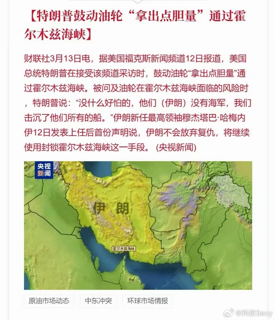 特朗普说拿出点胆量通过霍尔木兹海峡,我们已经击沉了他们所有的船,伊朗没有海军