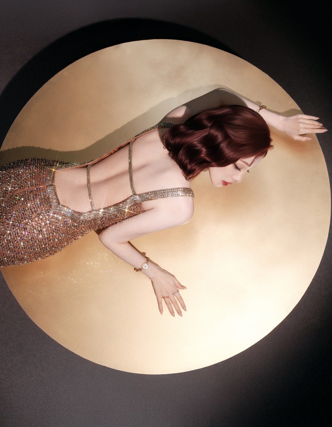 宋雨琦红发金色亮片长裙宋雨琦金色亮片长裙