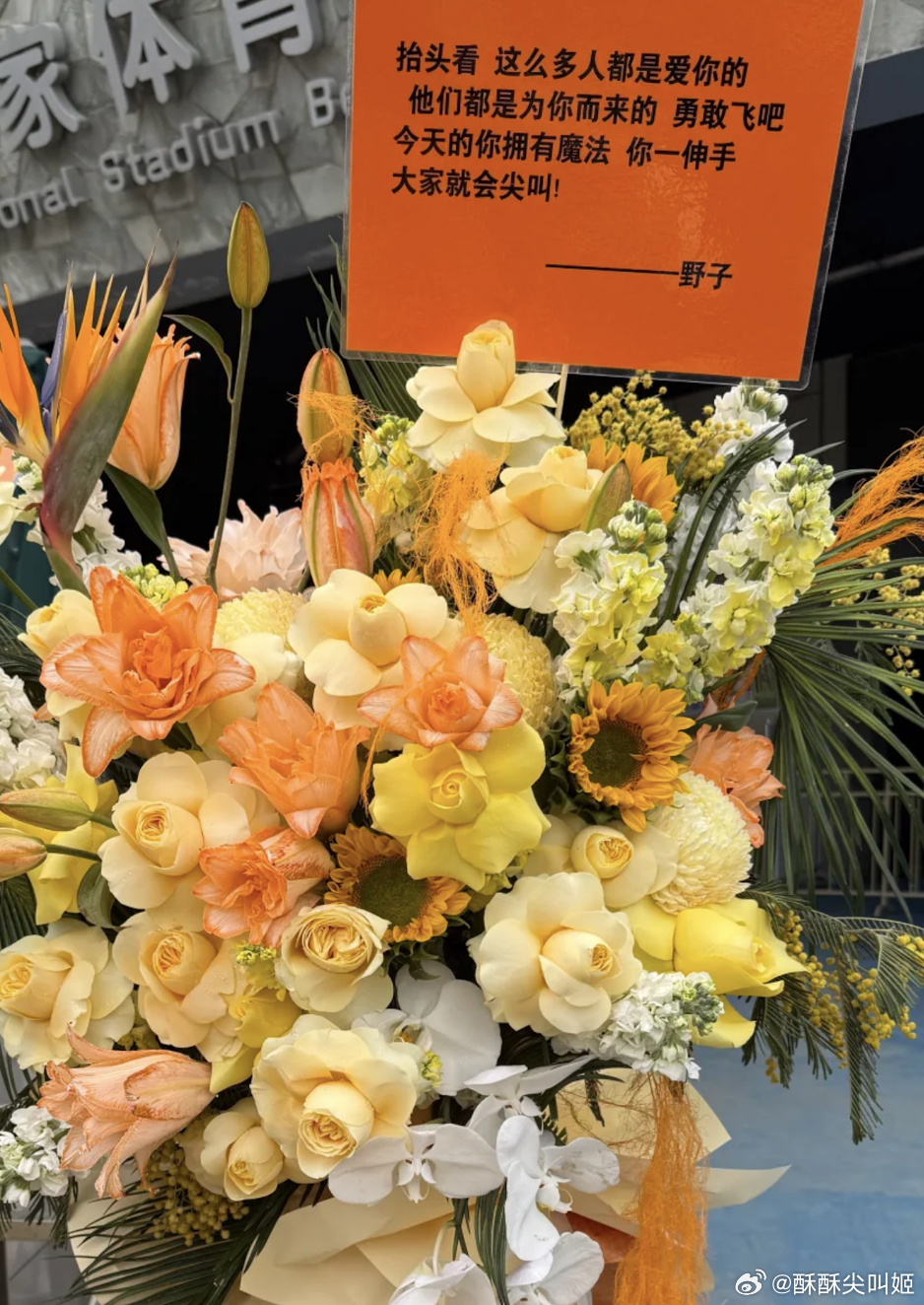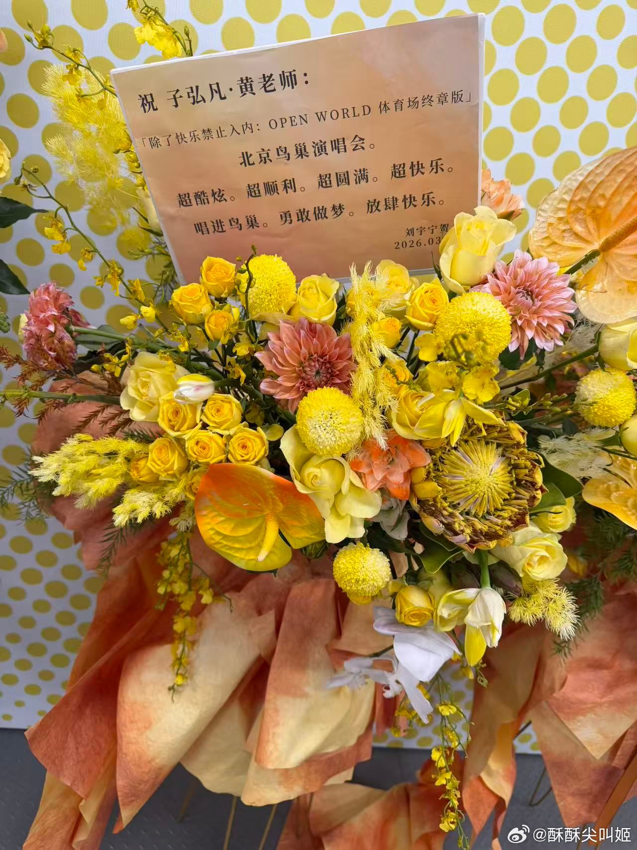 黄子弘凡内娱花篮名人堂耶耶耶!千呼万唤中我们黄子的北京鸟巢演唱会就在今晚啦!!!鸟巢已被黄色围绕ing,特别热闹的一天!看到了好多朋友们送来的花篮哦~~刘宇宁,周深,单依纯,周笔畅,张峻豪,张靓颖,丞磊,王赫野….你小子好广的社交圈!!完全内娱名人堂hhhh都好用心好特别!大家都在真诚祝福这个快乐男孩梦想实现!!此男就这样一步一个脚印唱到了梦寐以求的鸟巢!燥侯今晚火热开唱🥰🥰掀翻鸟巢天空!!!黄子弘凡鸟巢演唱会