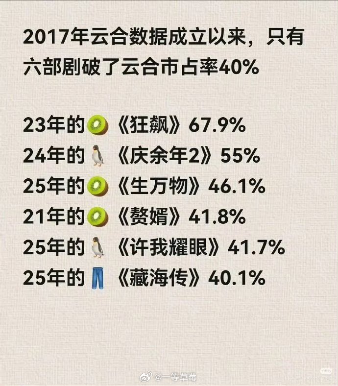 逐玉云合46.8%超过生万物,🈴历史第三了
