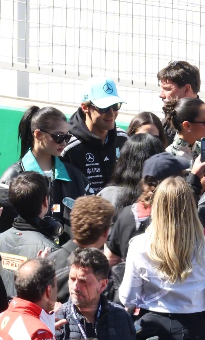 关晓彤程潇F1观赛造型 和拉塞尔合影,真养眼