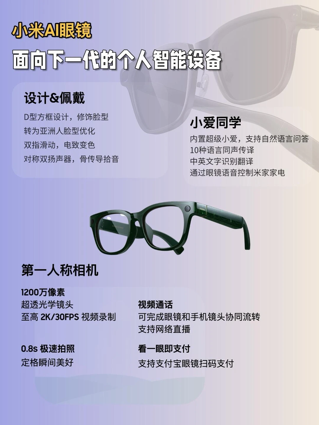 三款眼镜的重量差不多,也都有专门做轻量化设计,可以融入日常佩戴。小米和雷鸟更偏行业老大哥Meta的设计风格。千问AI眼镜G1外观亮眼,作为阿里巴巴千问AI助手智能眼镜,镜腿采用8mm设计,时尚好看