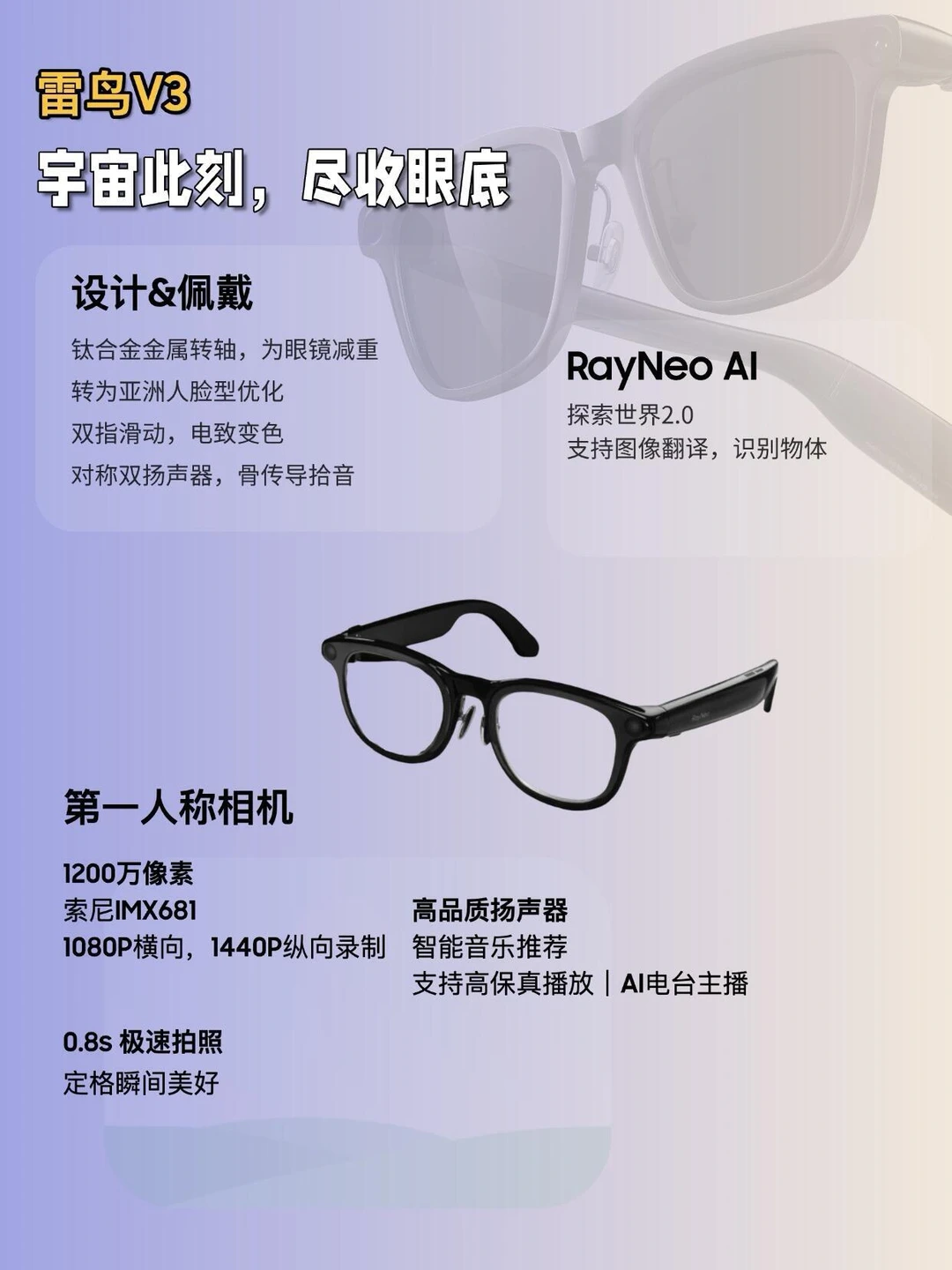 其次三者都支持拍摄、录像和AI语音交互,也可以作为蓝牙音频设备听歌接打电话。
