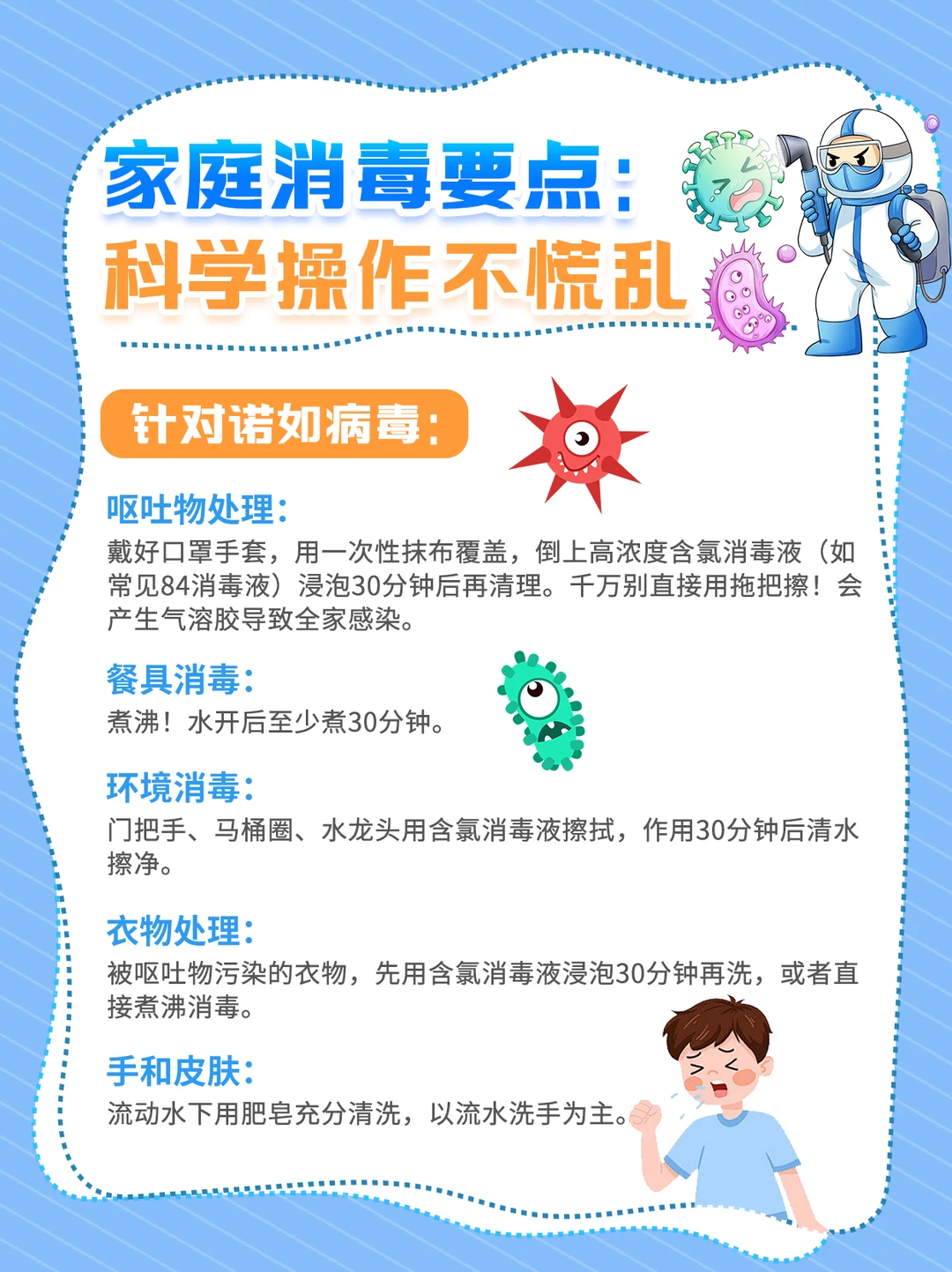 呕吐物:用高浓度含氯消毒液浸泡后再清理